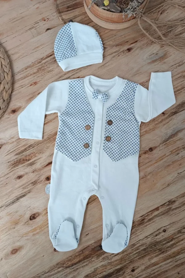 0-3 3-6 Ay Cep Saatli Kasketli Papyonlu Erkek Bebek Tulum