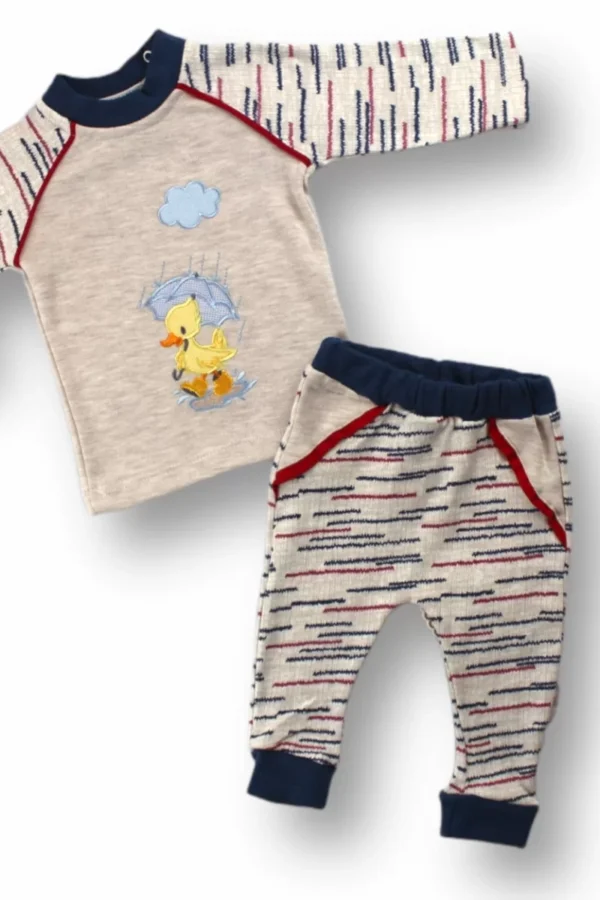 0-3 3-6 6-9 Ay Şemsiyeli Ördek Nakışlı Uzun Kollu Sweatli 2li Kız-erkek Bebek Takımı