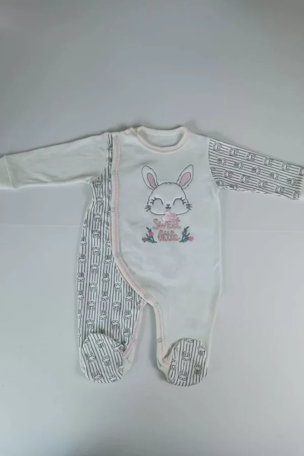 0-3 3-6 Ay Minik Tavşan Nakışlı Boydan Çıtçıt Kapamalı Kız Erkek Bebek Tulumu