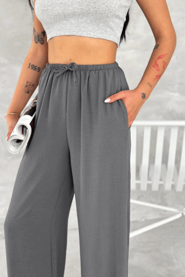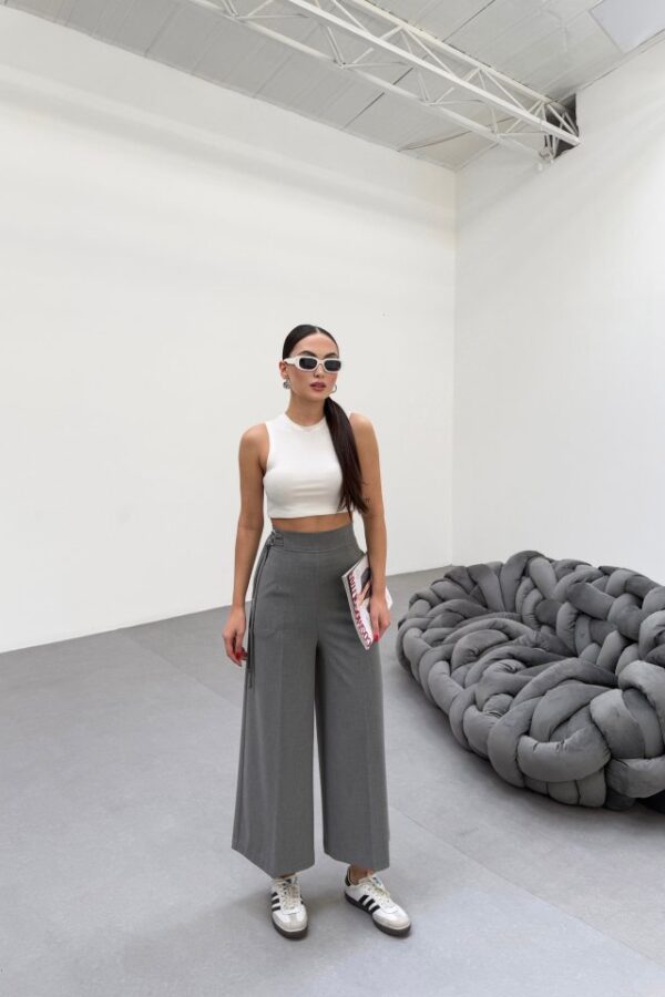 PANTOLON BEL ŞERİT DETAYLI – Gri