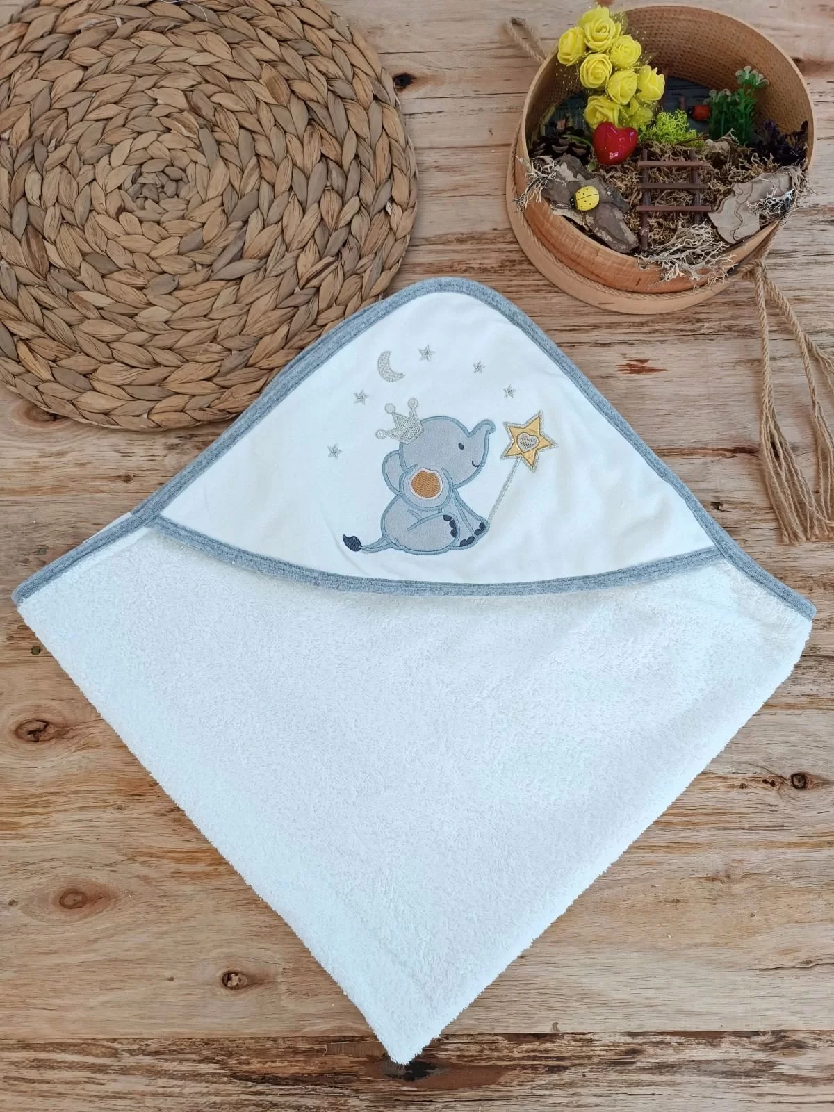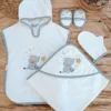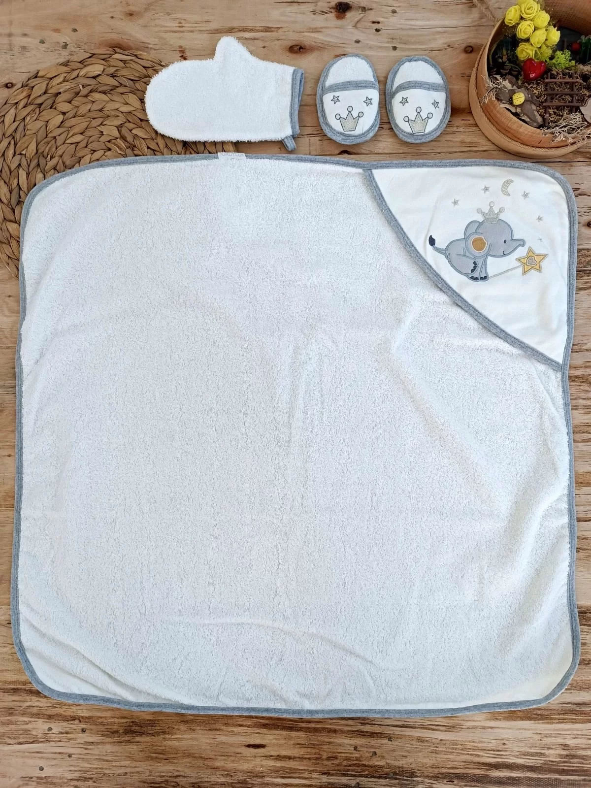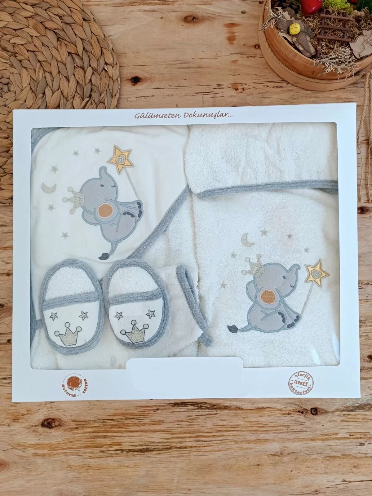 0-1 Yaş Sevimli Fil Nakışlı Pareolu 4lü Kız Erkek Bebek Havlu Silgi Takımı