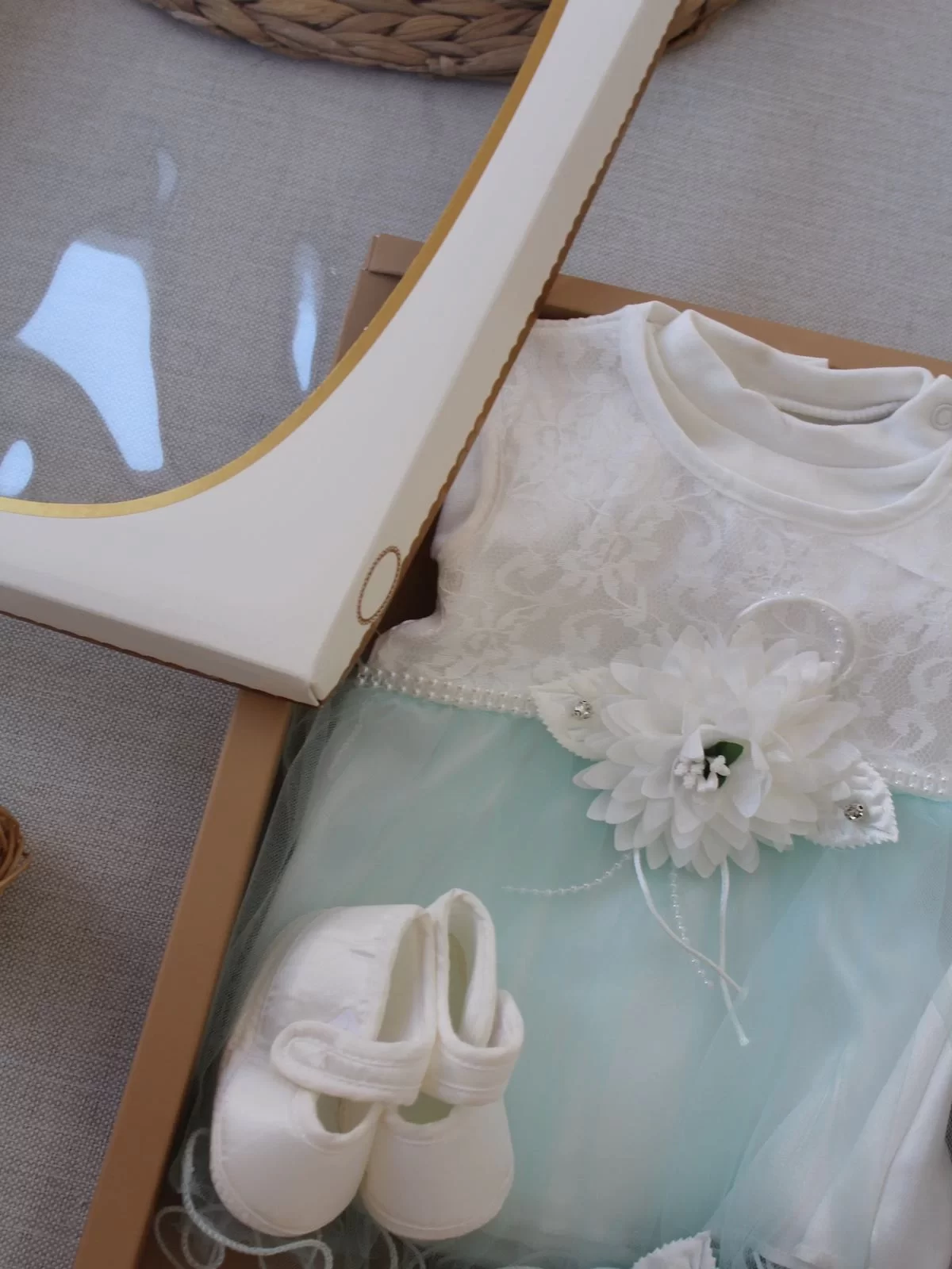 0-6 Ay Tül Etekli Kurdelalı Taş Detaylı Kız Bebek Hediyelik, Mevlütlük, Kınalık 3lü Takım