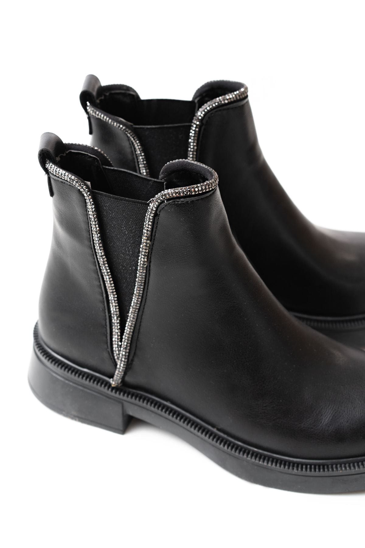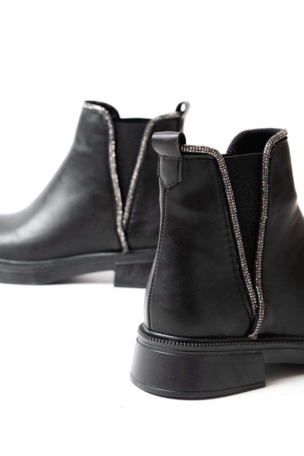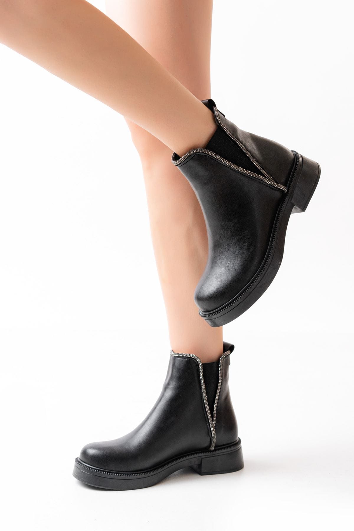 02-02 Siyah Taş Aksesuarlı Lastikli Günlük Kadın Bot