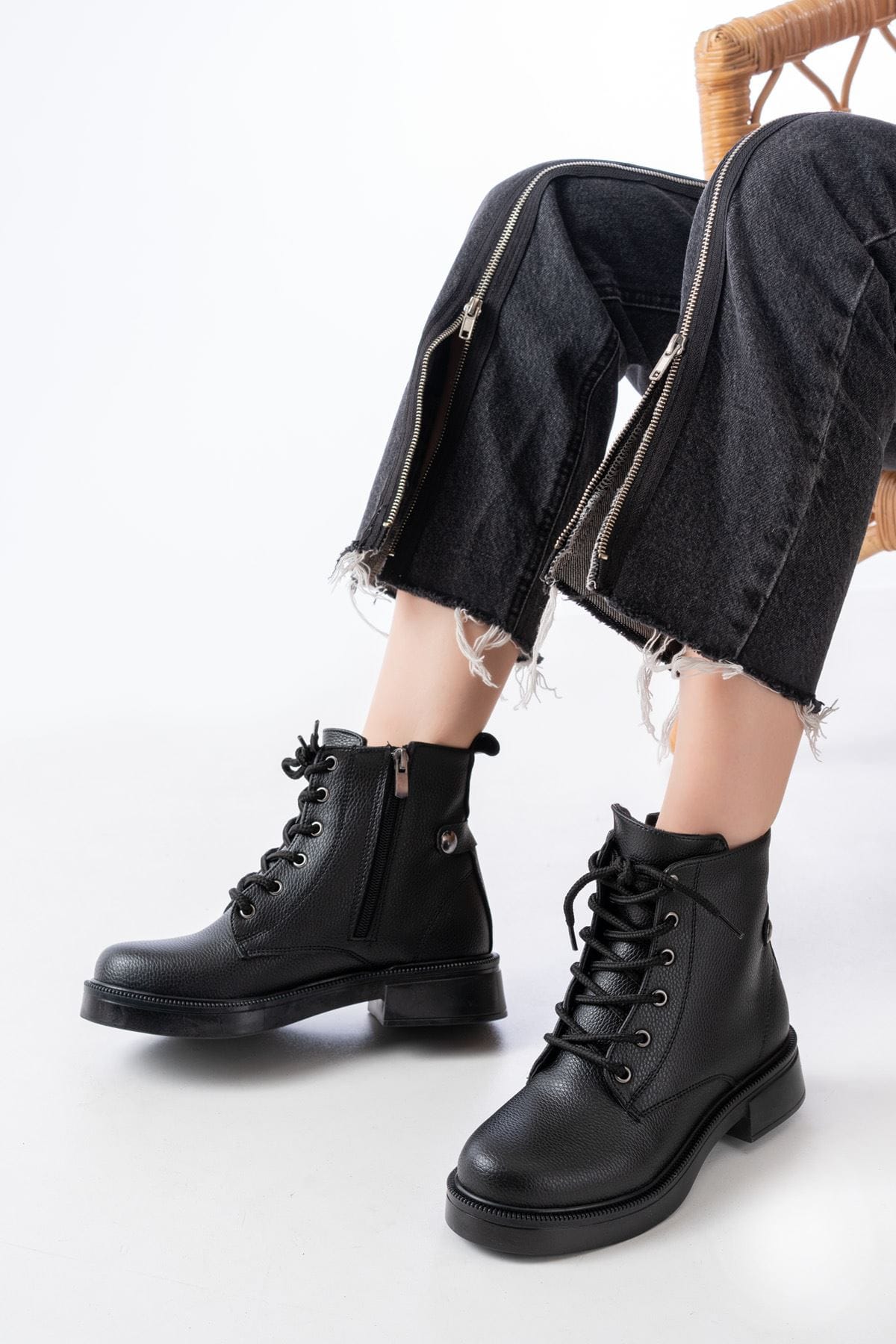 02-2003 Siyah Bağcıklı Fermuarlı Günlük Kadın Bot
