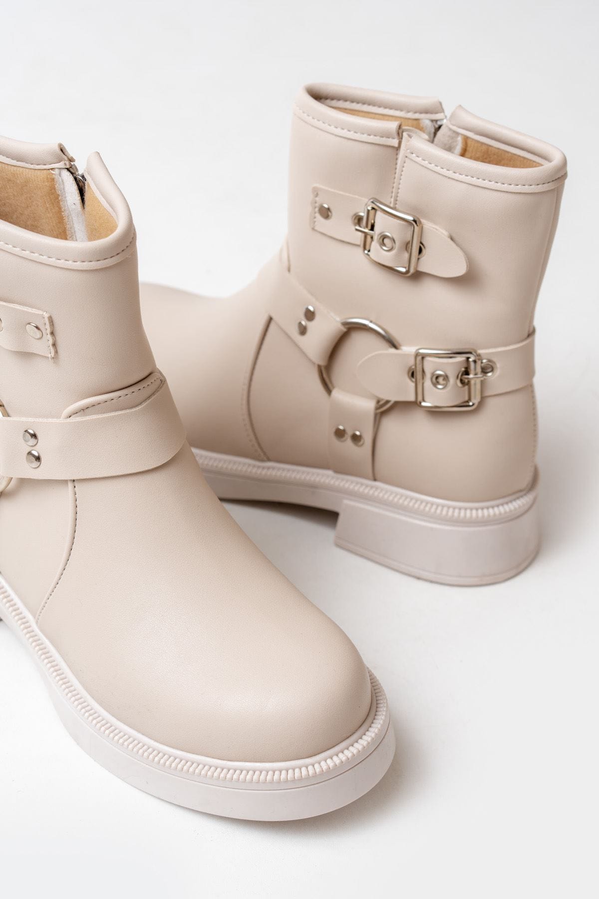 02-2013 Bej Toka Aksesuarlı Fermuarlı Günlük Kadın Bot