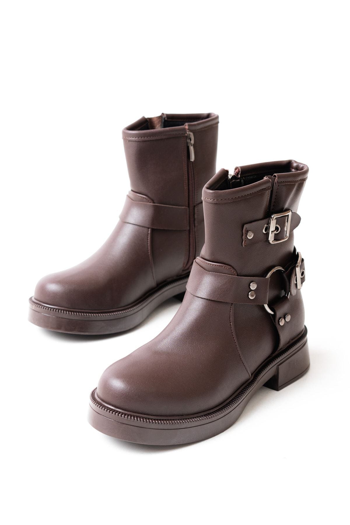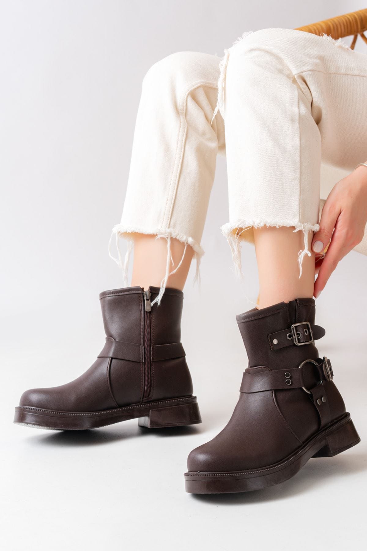 02-2013 Kahverengi Toka Aksesuarlı Fermuarlı Günlük Kadın Bot