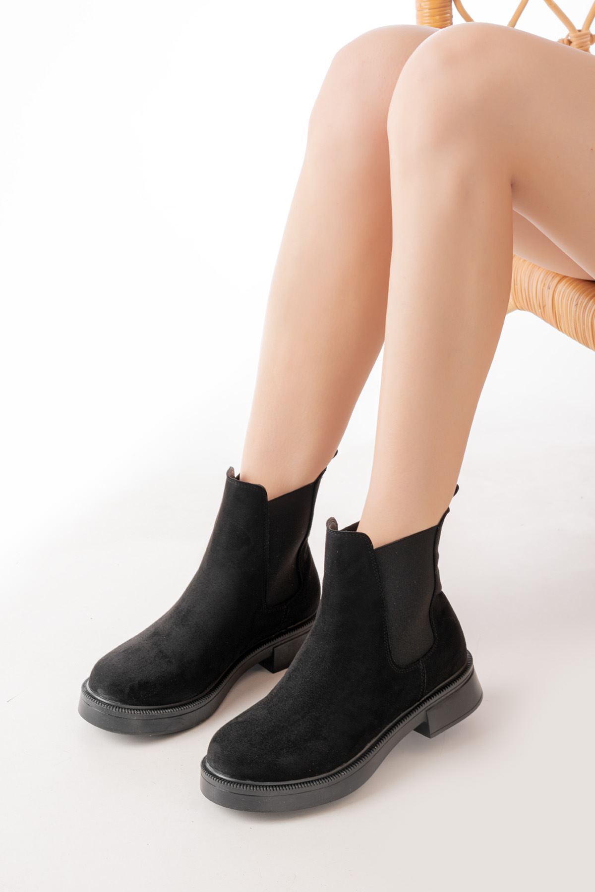 02-2137 Siyah Süet Lastikli Günlük Kadın Bot