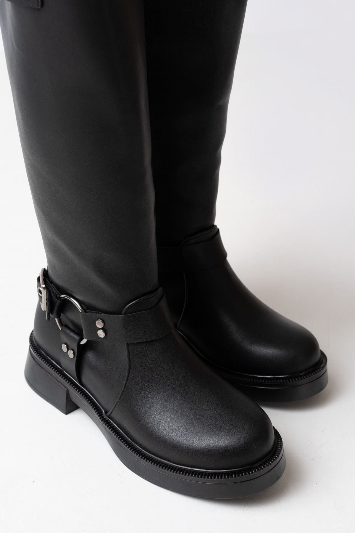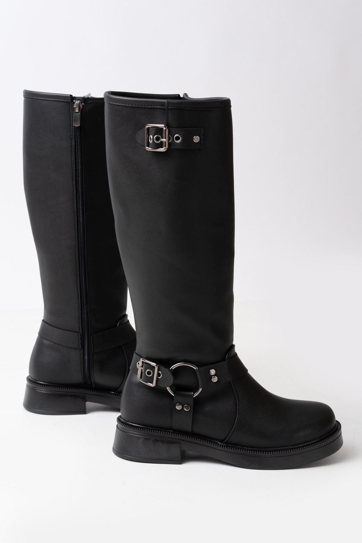 02-312 Siyah Toka Aksesuarlı Fermuarlı Günlük Kadın Çizme