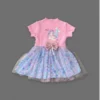 1-2-3 Yaş Denizkızı Baskılı Pul Desen Etekli Kız Bebek Elbisesi