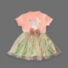 1-2-3 Yaş Denizkızı Baskılı Pul Desen Etekli Kız Bebek Elbisesi