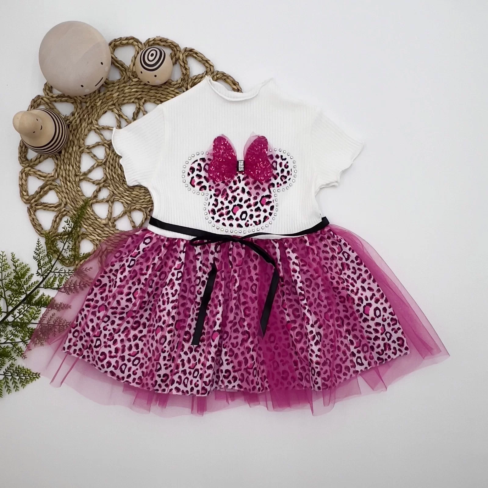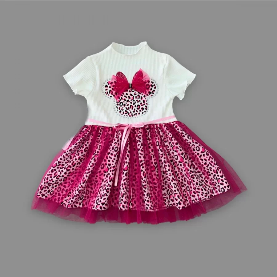1-2-3 Yaş Fiyonklu Mickey Astarlı Etekli Kız Bebek Tütü Elbisesi