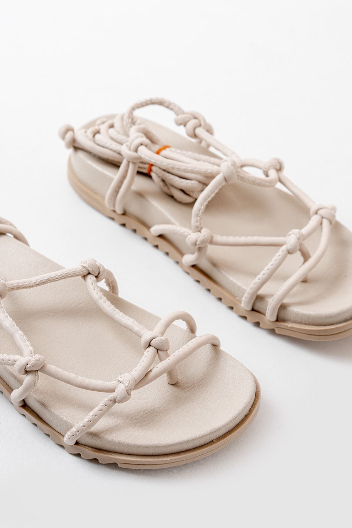 1001-1001 Bej Bilekten Bağcıklı Kadın Sandalet