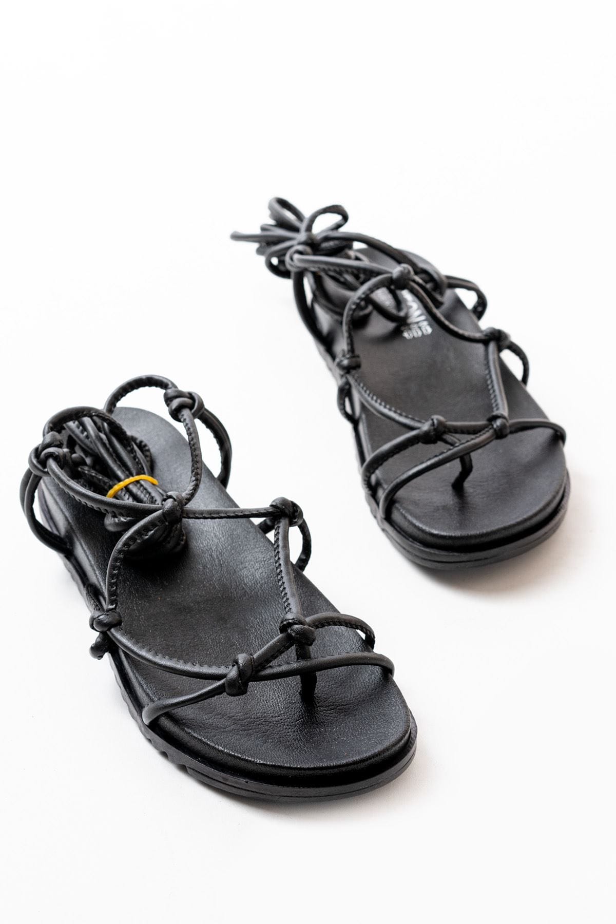 1001-1001 Siyah Bilekten Bağcıklı Kadın Sandalet