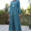 1627 Yaka Bağcıklı Tesettür Elbise – Mint
