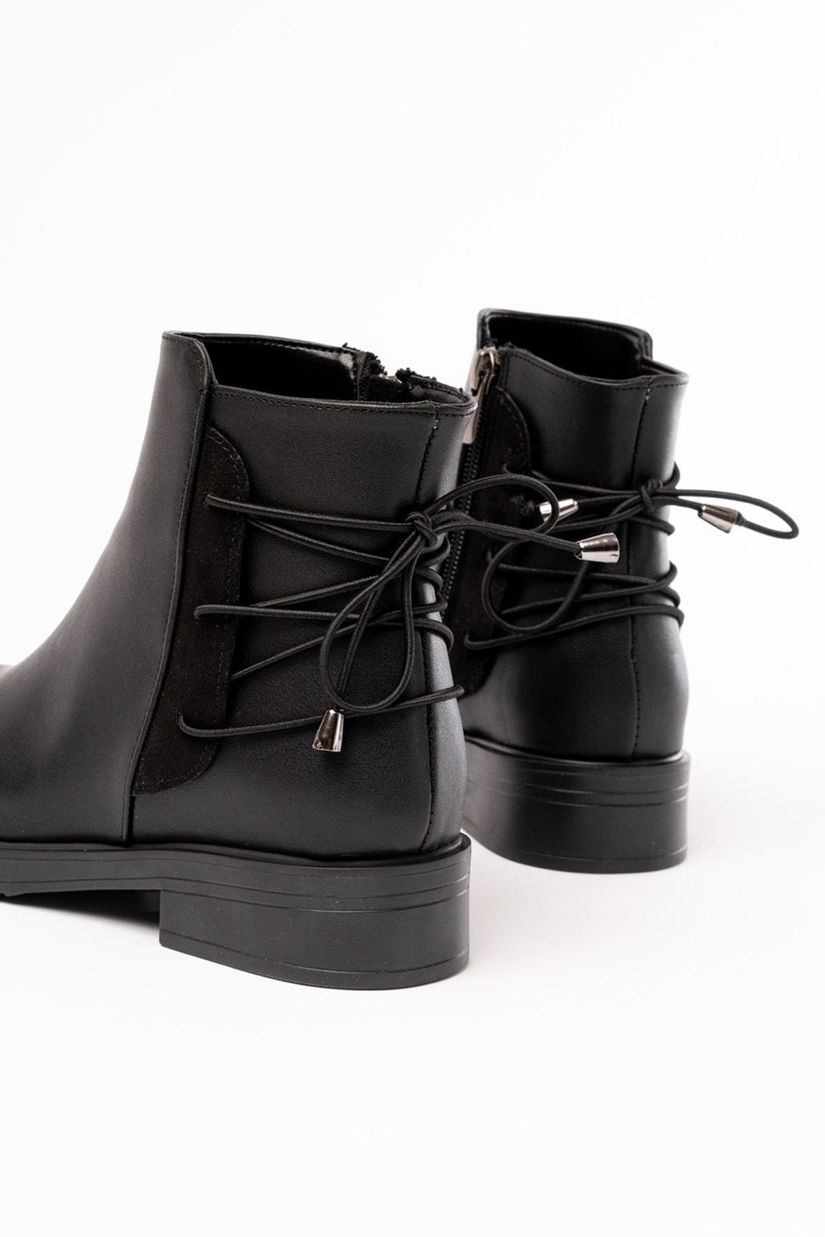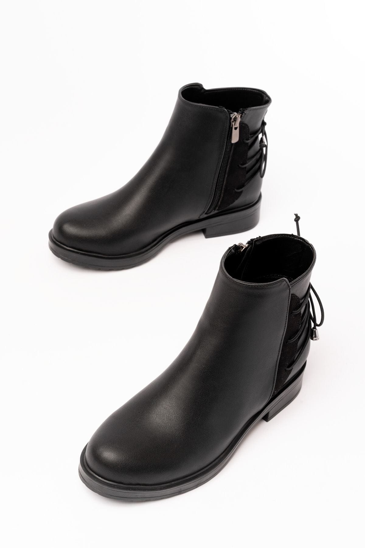 165-209 Siyah Arka Bağcık Aksesuarlı Fermuarlı Günlük Kadın Bot