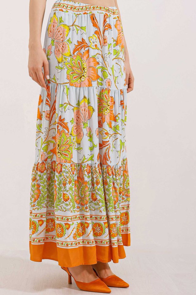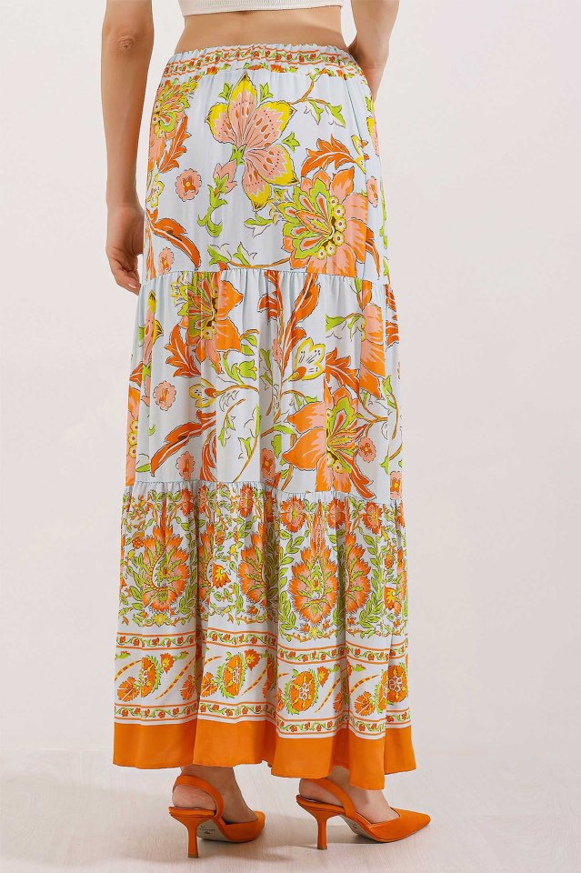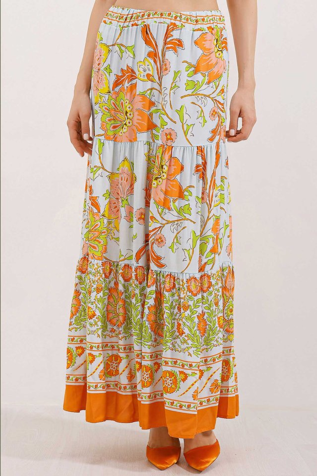 1898 Desenli Uzun Etek – Turuncu
