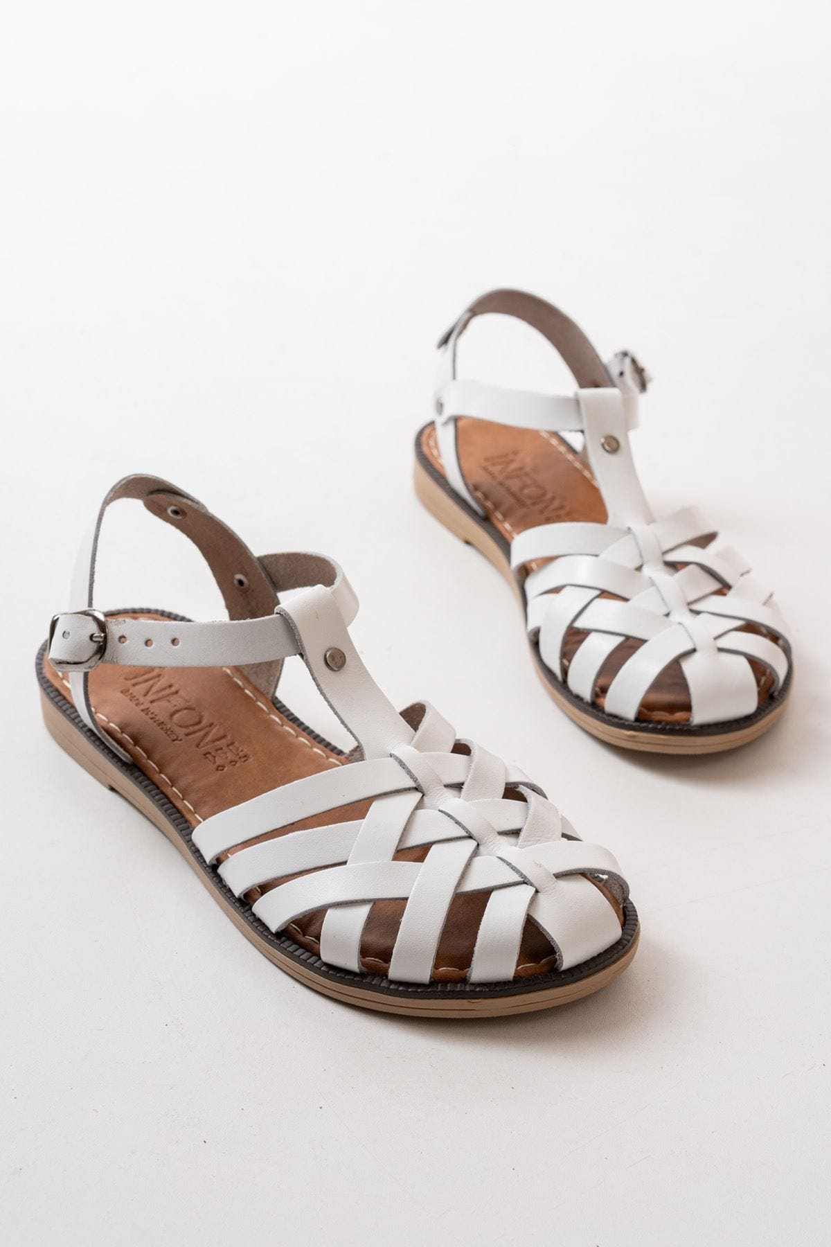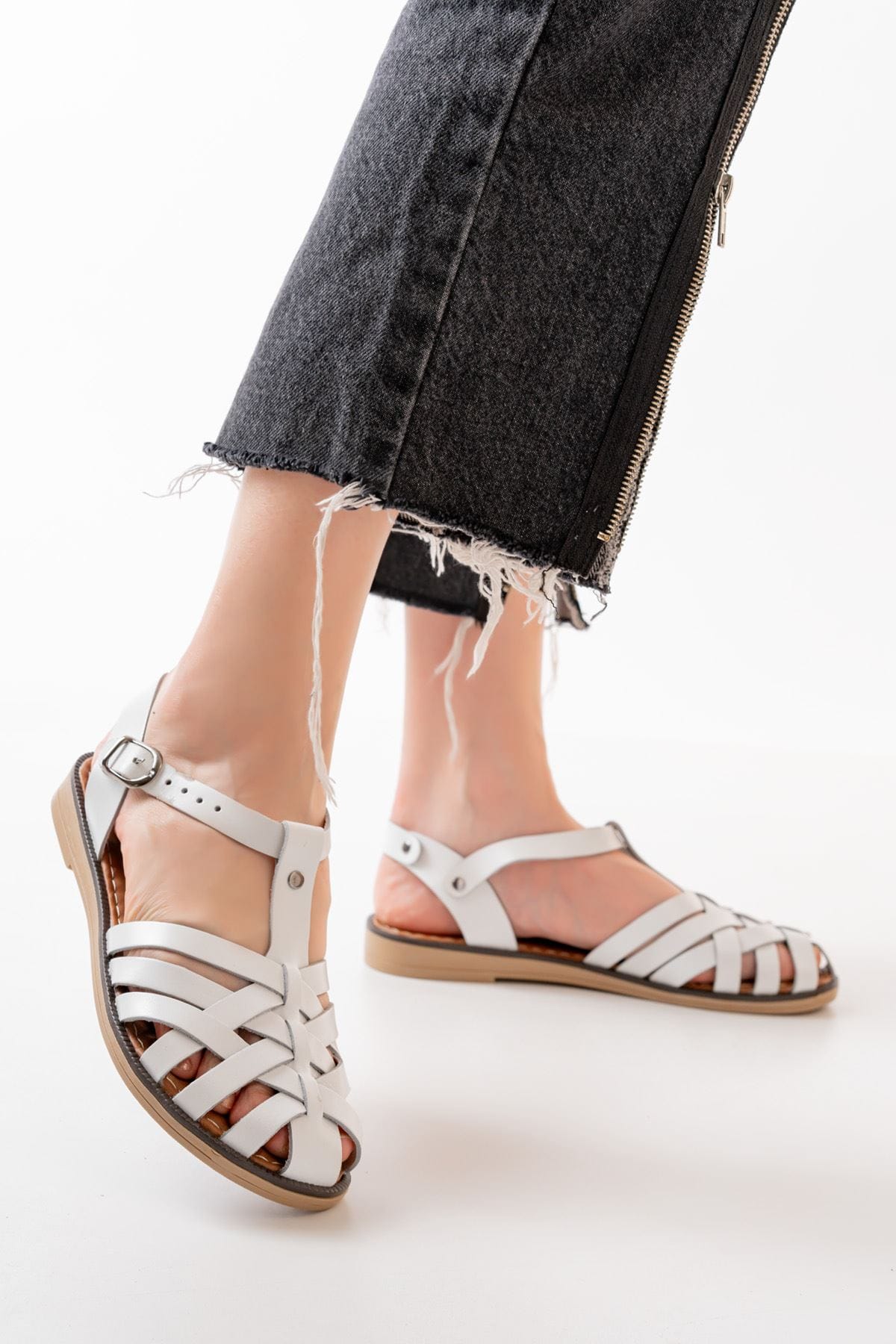 205-02 Beyaz Ortopedik Hakiki Deri Kadın Sandalet