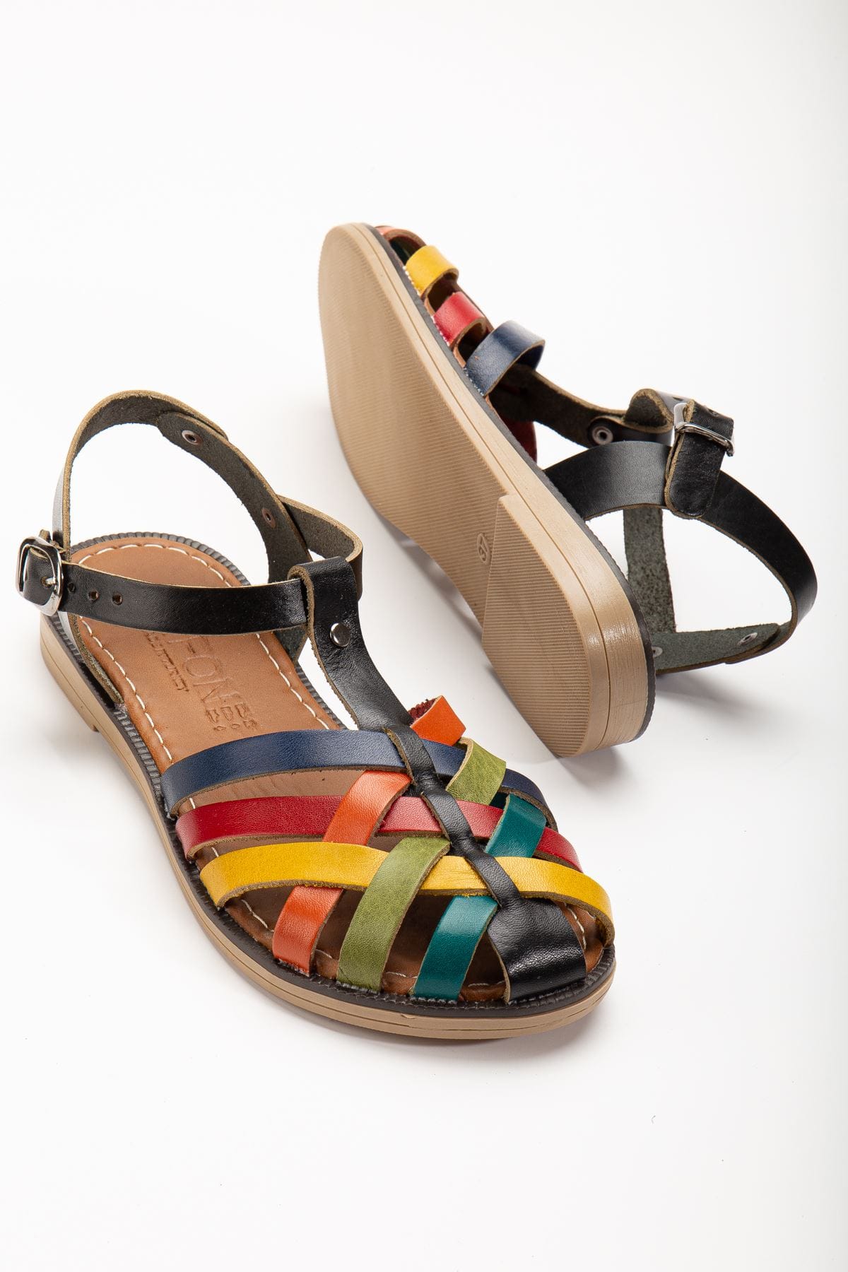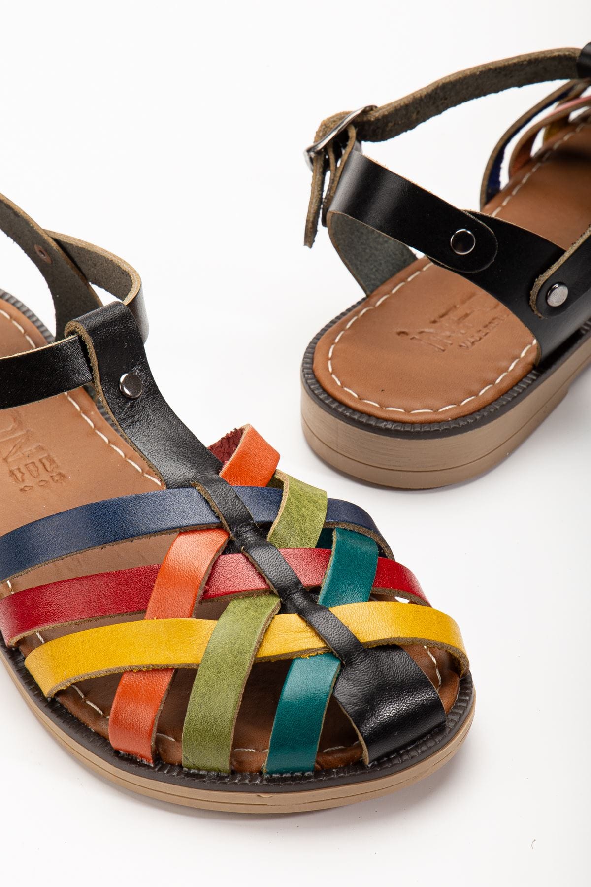 205-02 Siyah Multi Ortopedik Hakiki Deri Kadın Sandalet