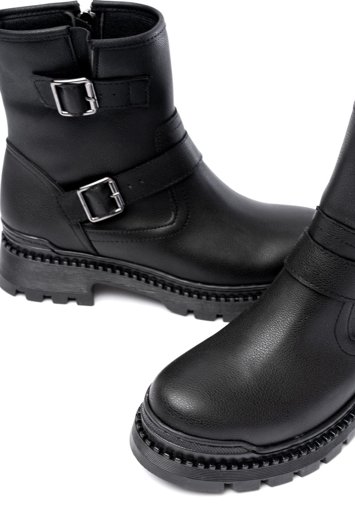2051-2014 Siyah Tokalı Düz Topuklu Tokalı Fermuarlı Günlük Kadın Bot