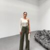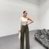 230 Gr Poly Viscose Lycra Metal Düğme Palazzo Pantolon