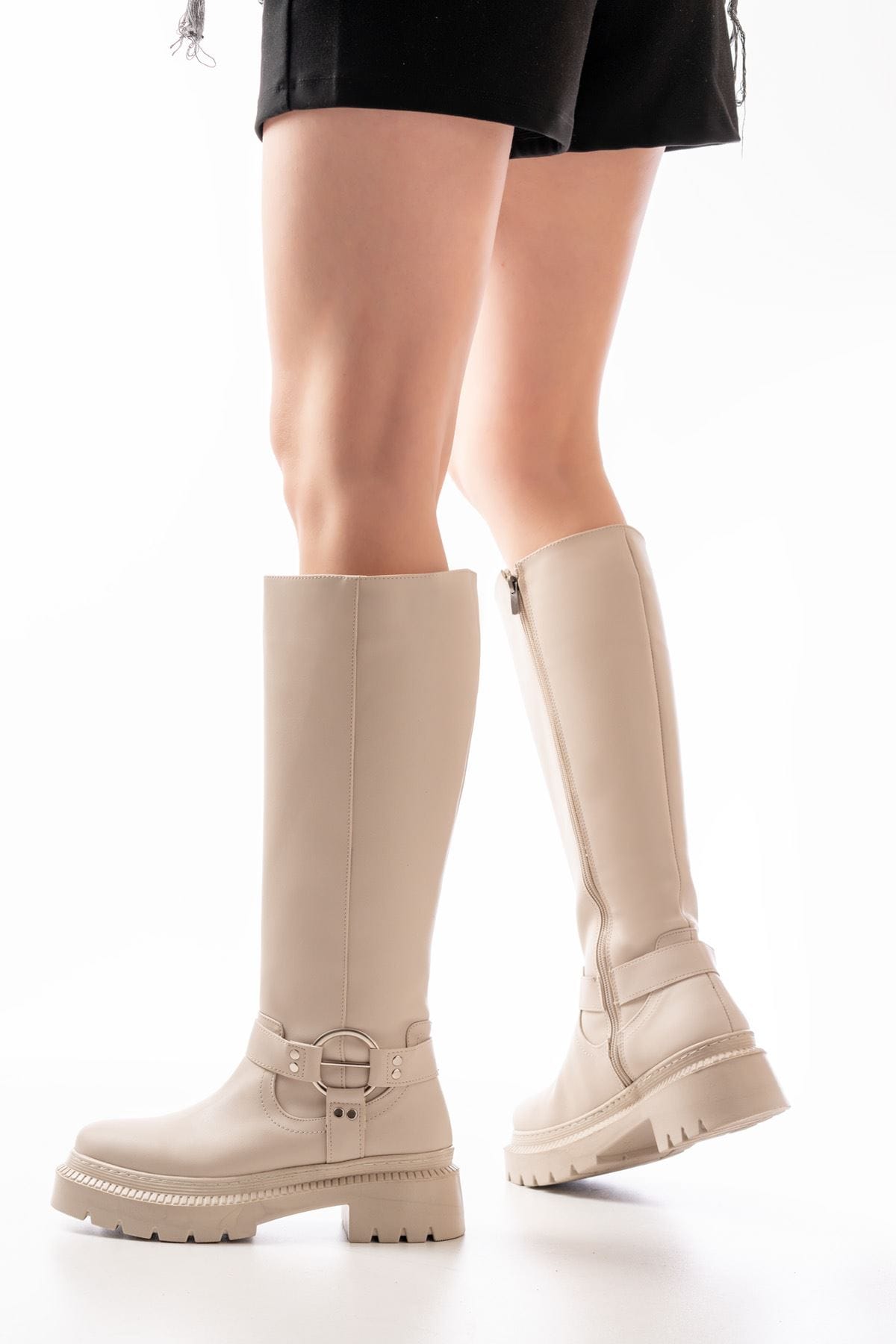 236-3021 Bej Fermuarlı Günlük Kadın Çizme