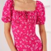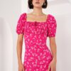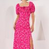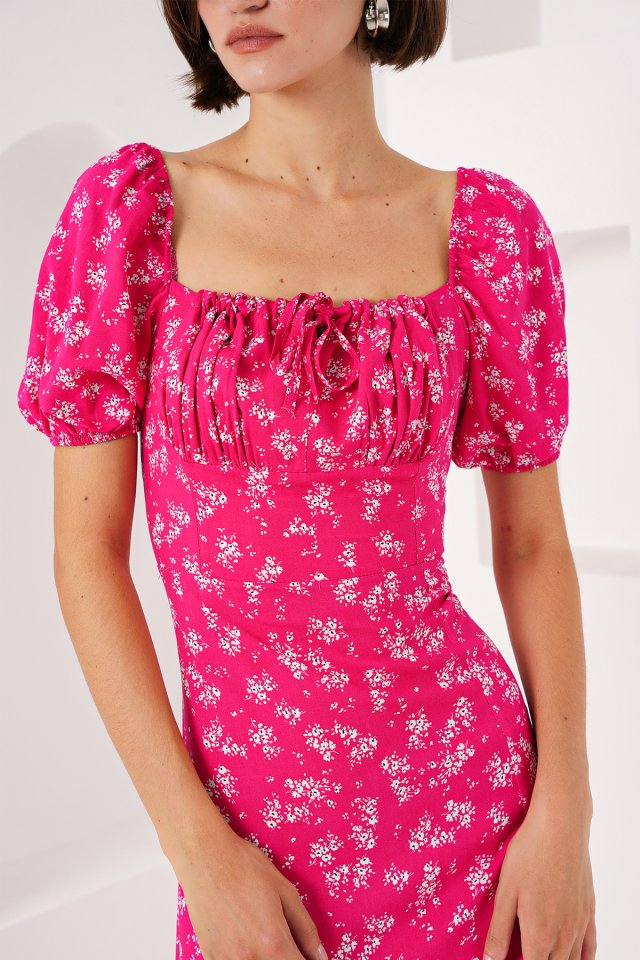 2387 Yırtmaç Detaylı Elbise – Fuşya