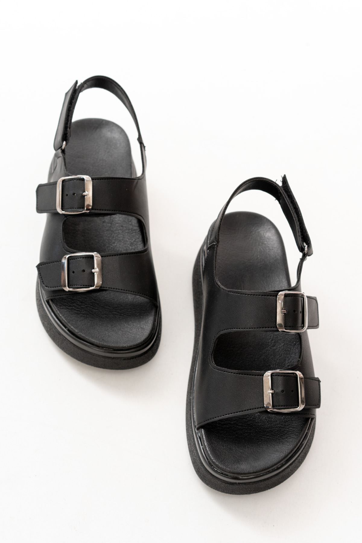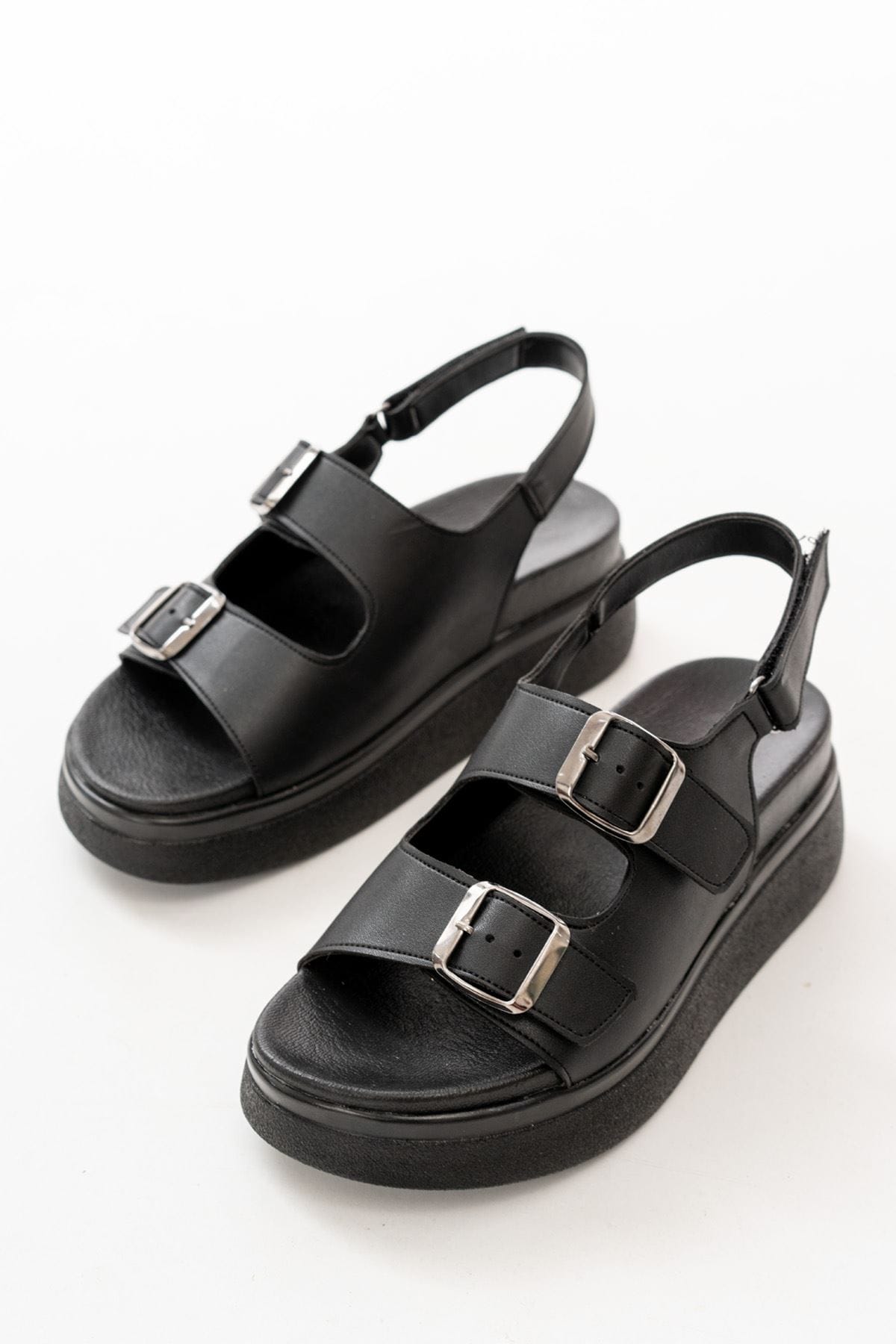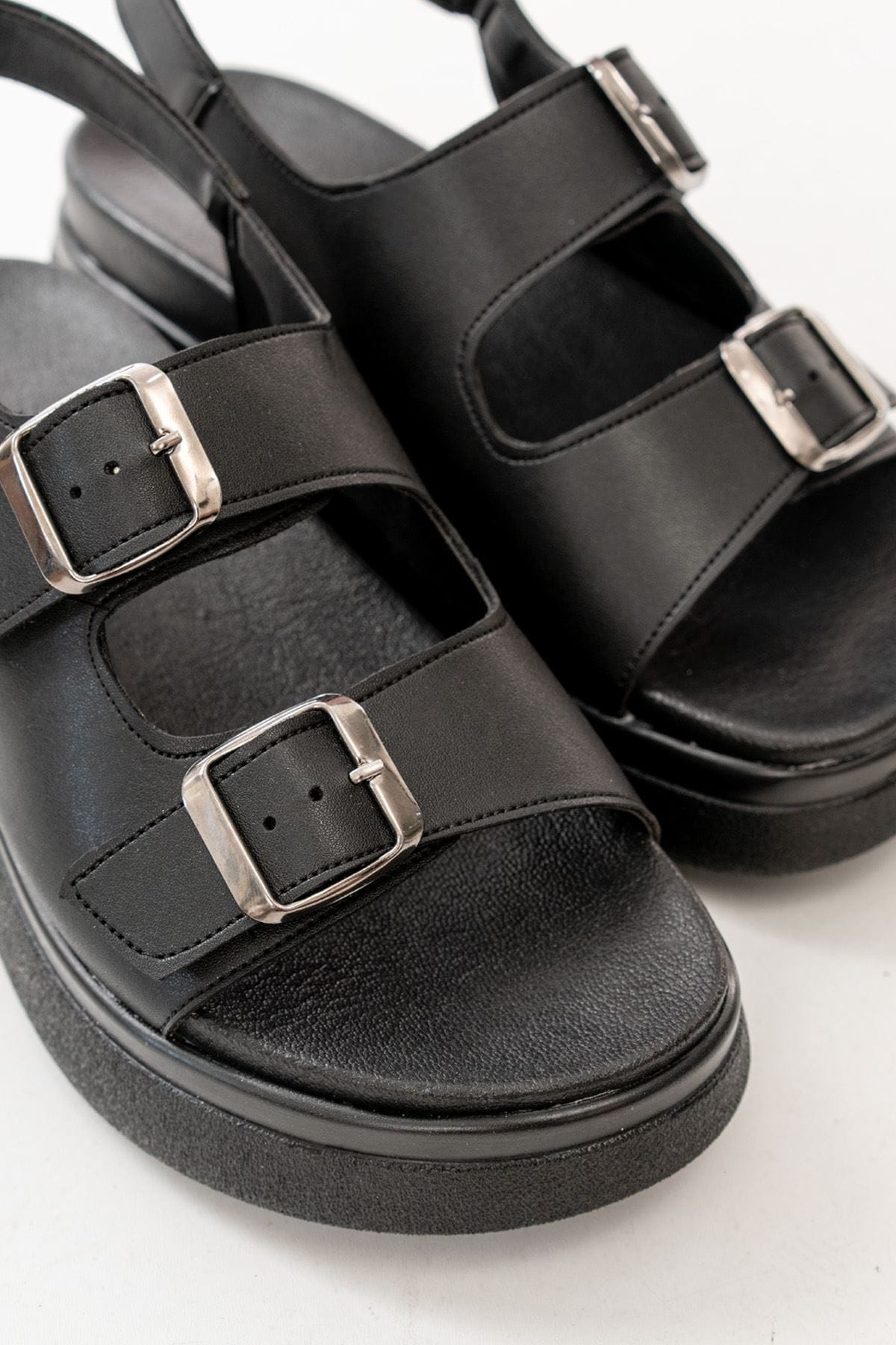 24422-1185 Siyah Dolgu Topuk Kadın Sandalet