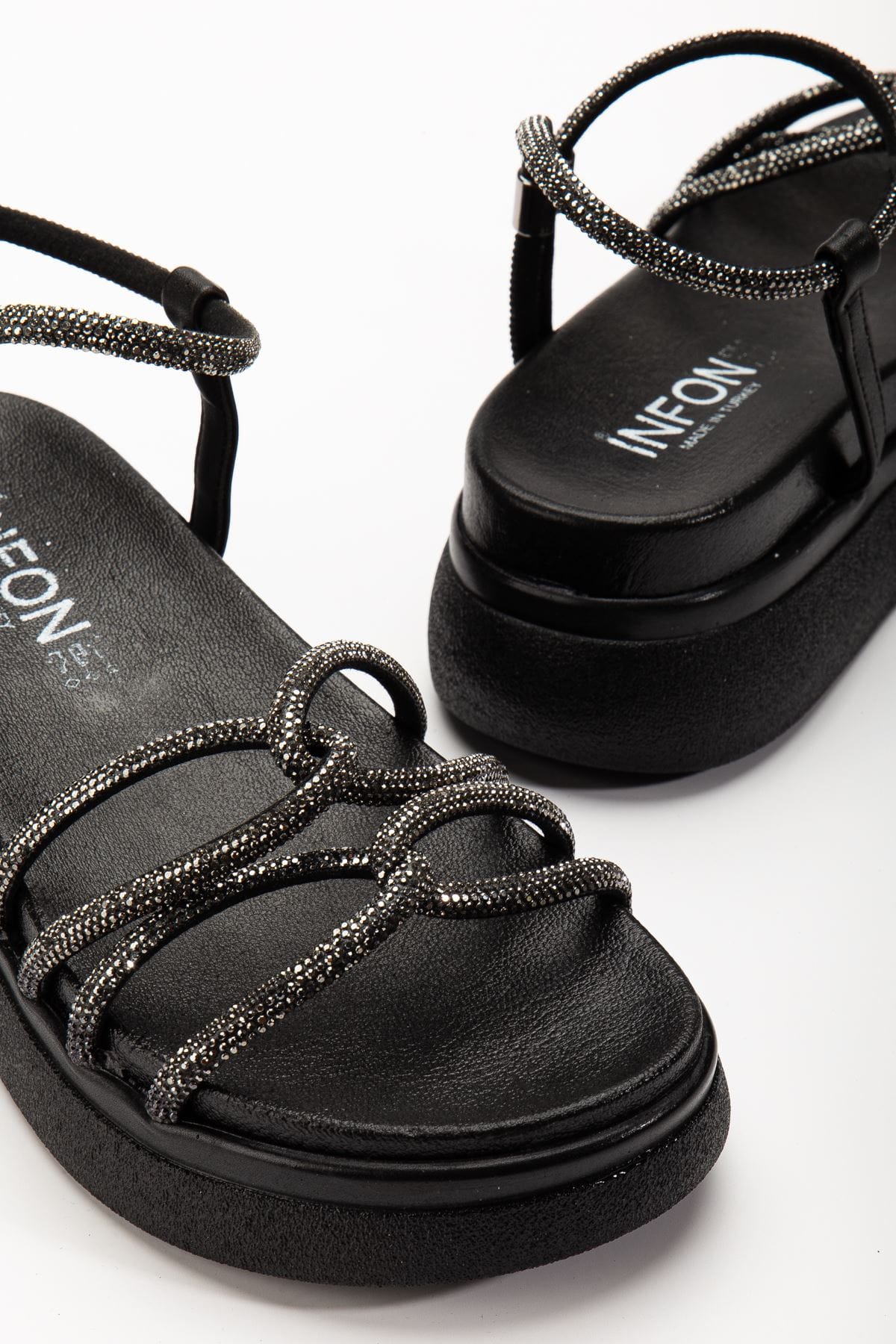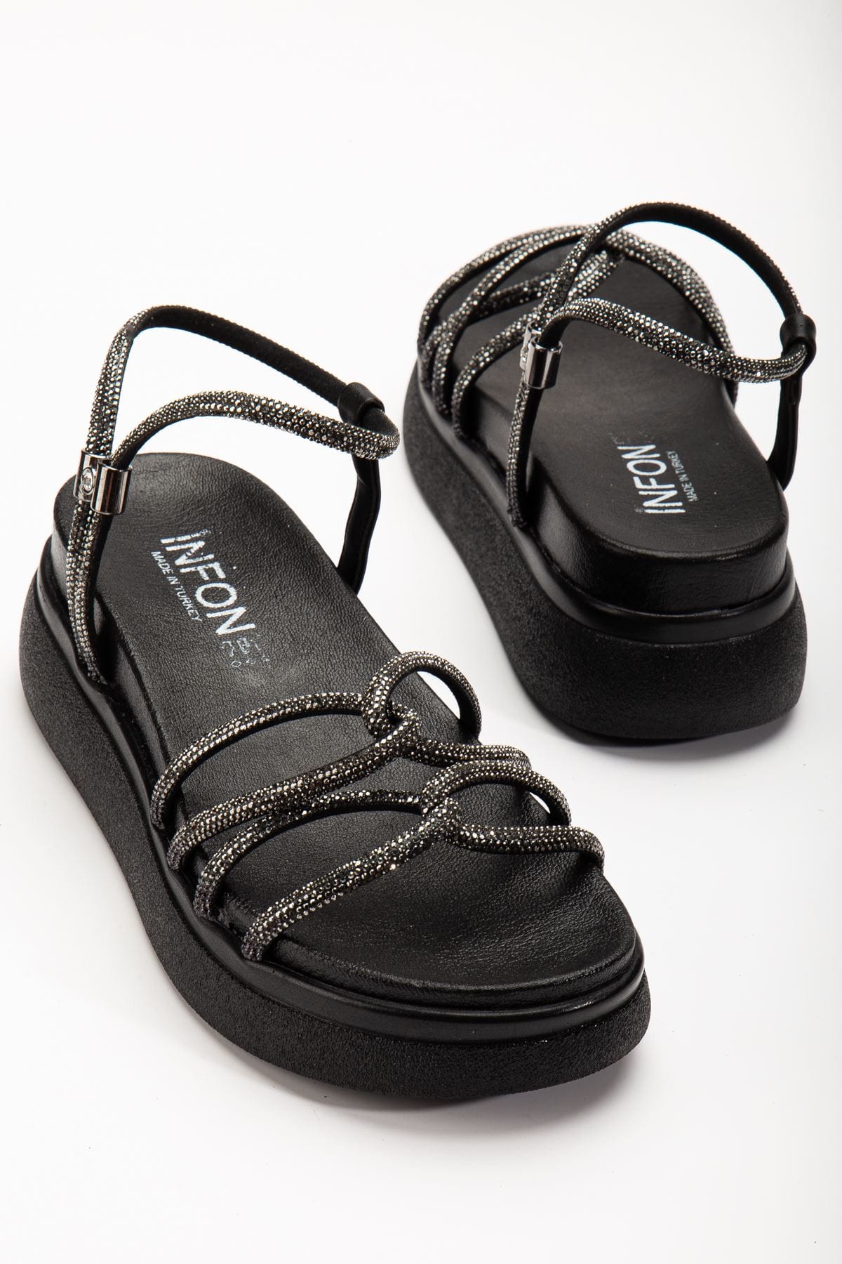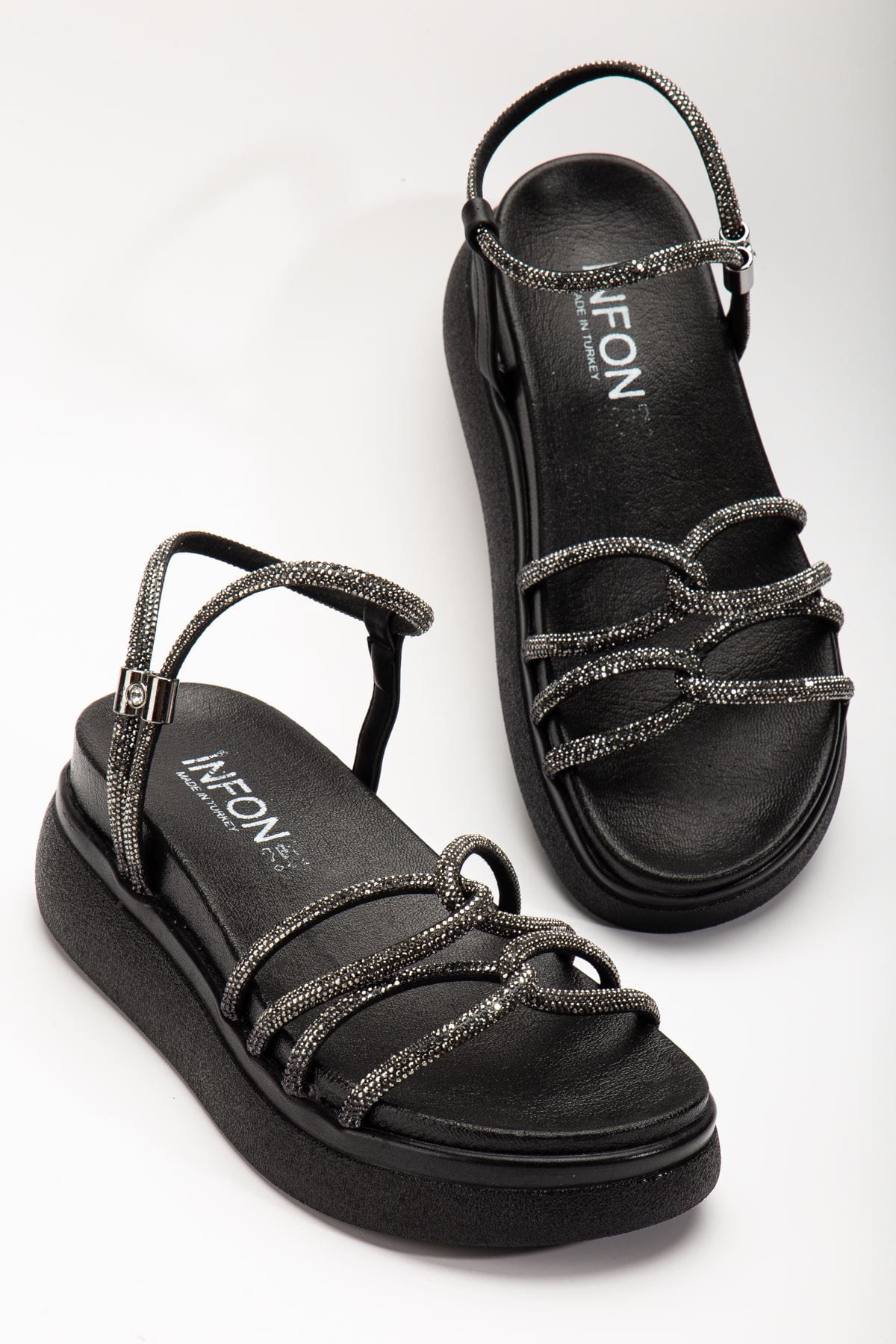 24422-1221 Siyah Dolgu Topuk Kadın Sandalet