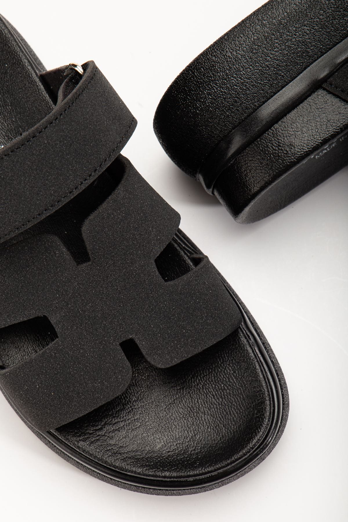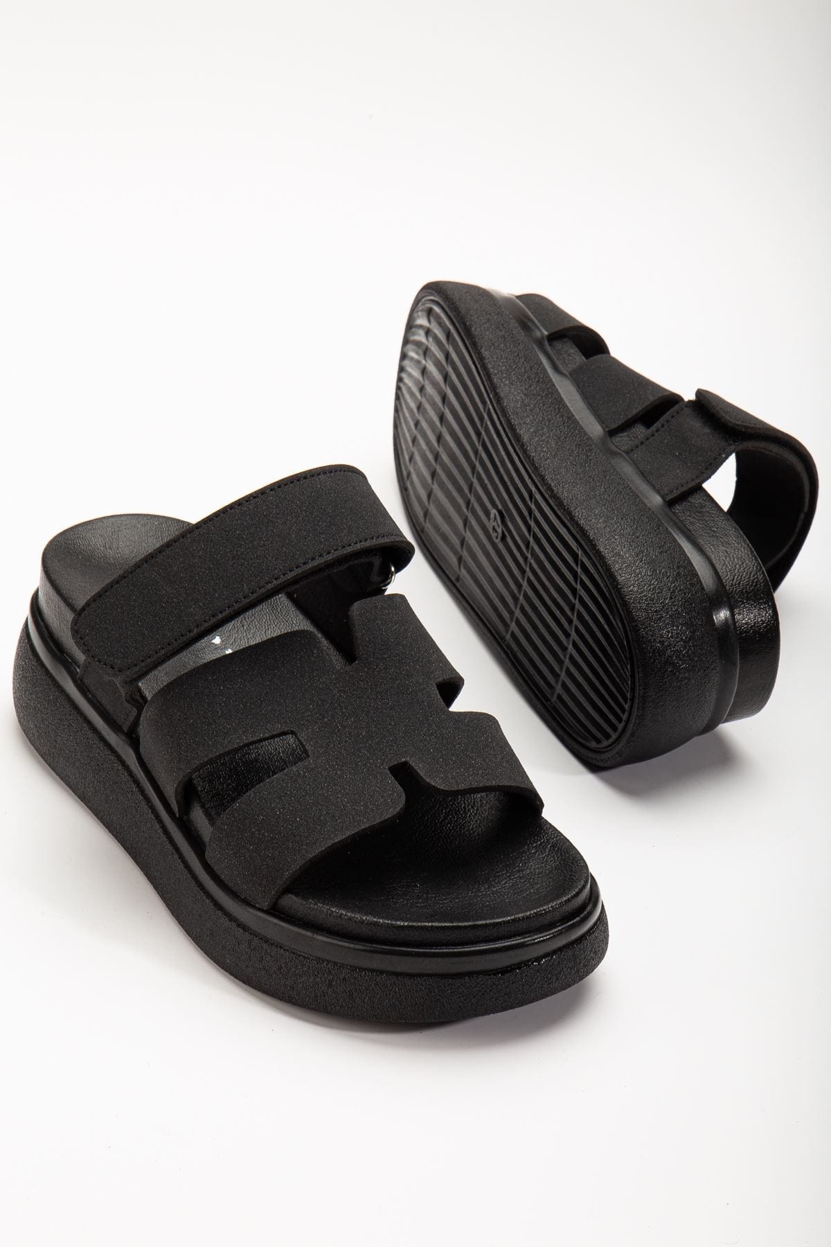 24422-HERMES Siyah Dolgu Topuk Kadın Sandalet