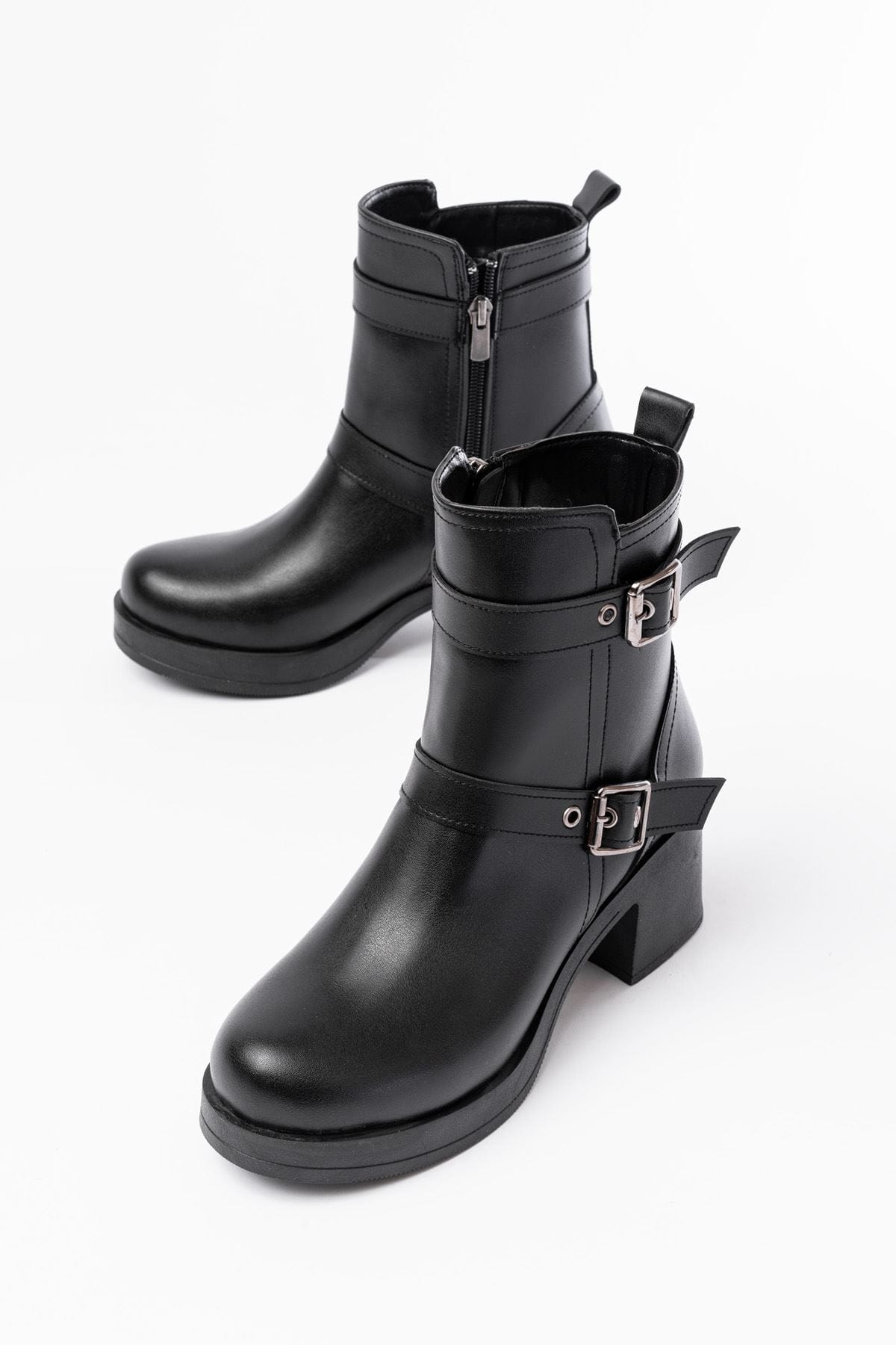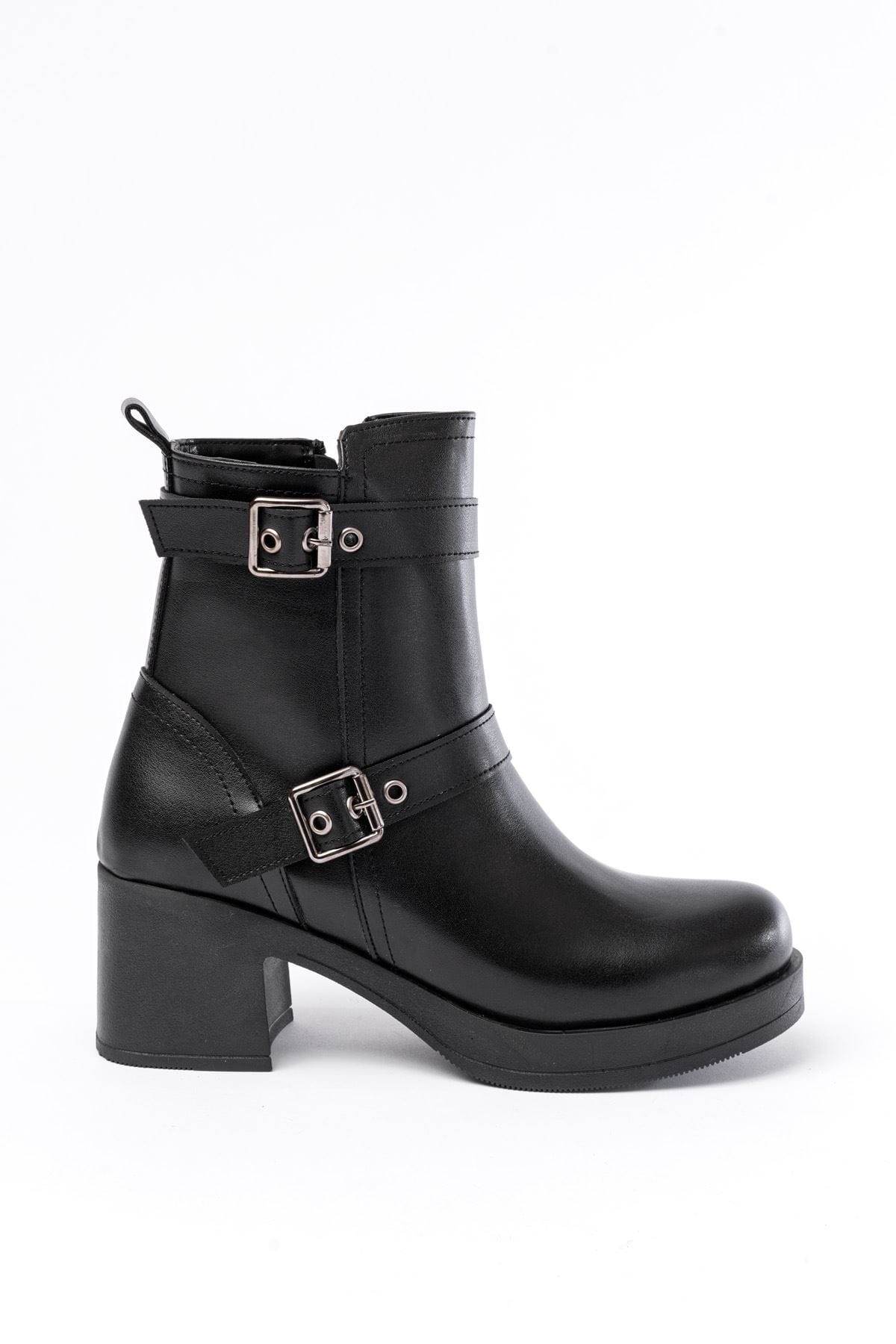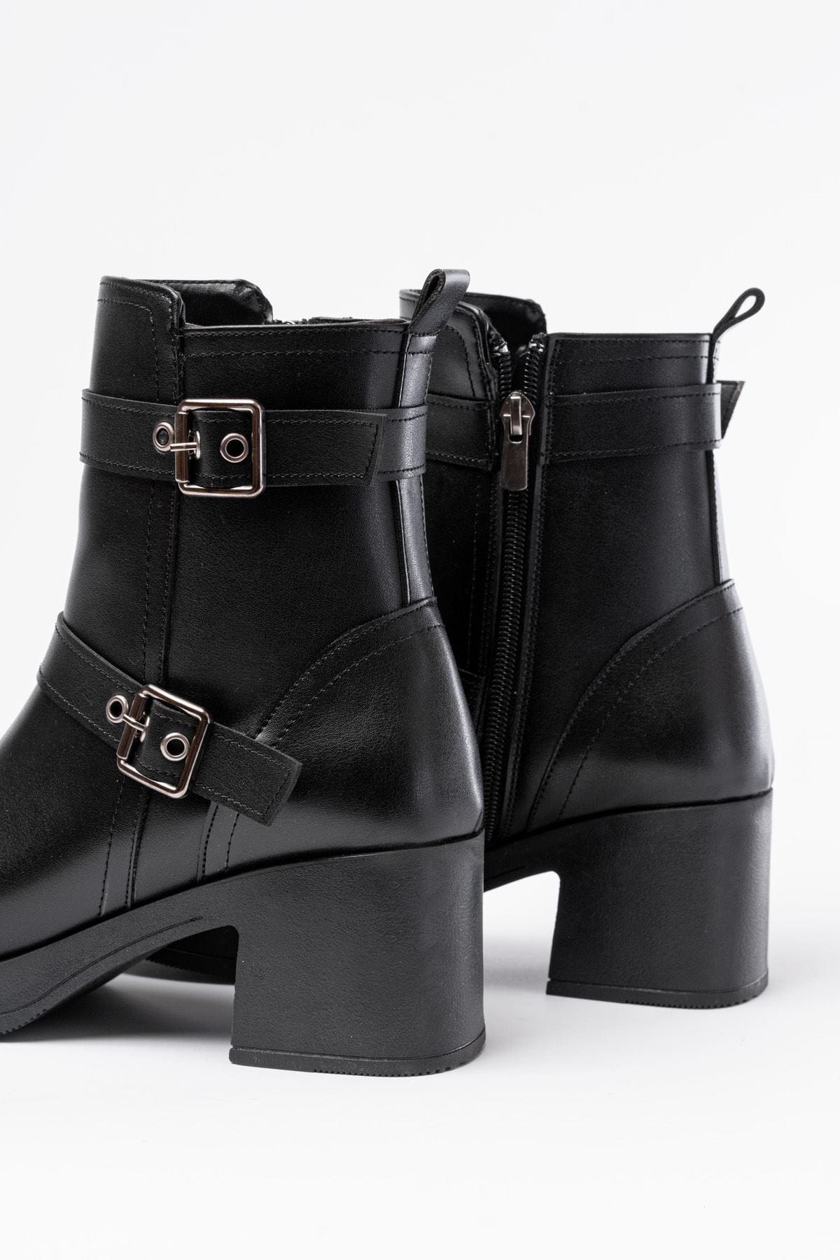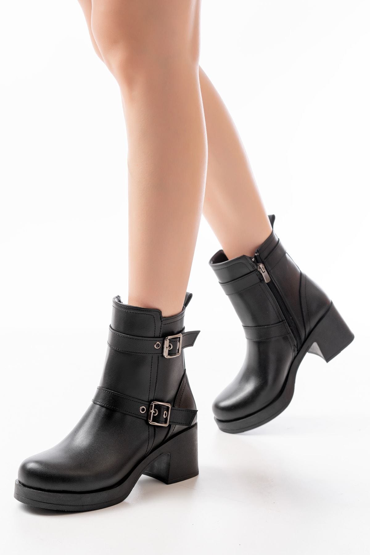 5109-3027 Siyah Topuklu Fermuarlı Günlük Kadın Bot