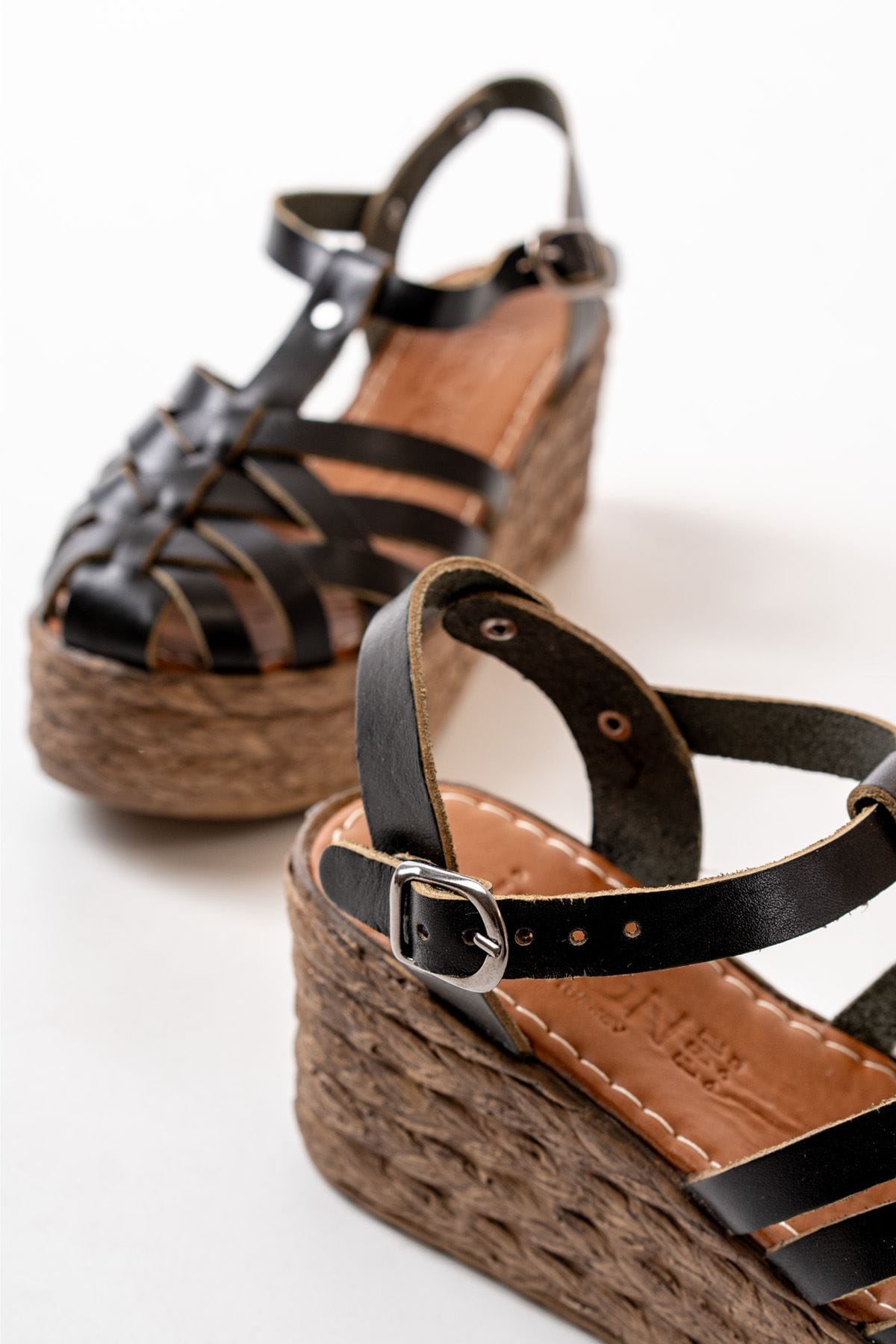 684-02 Siyah Ortopedik Hakiki Deri Dolgu Kadın Sandalet