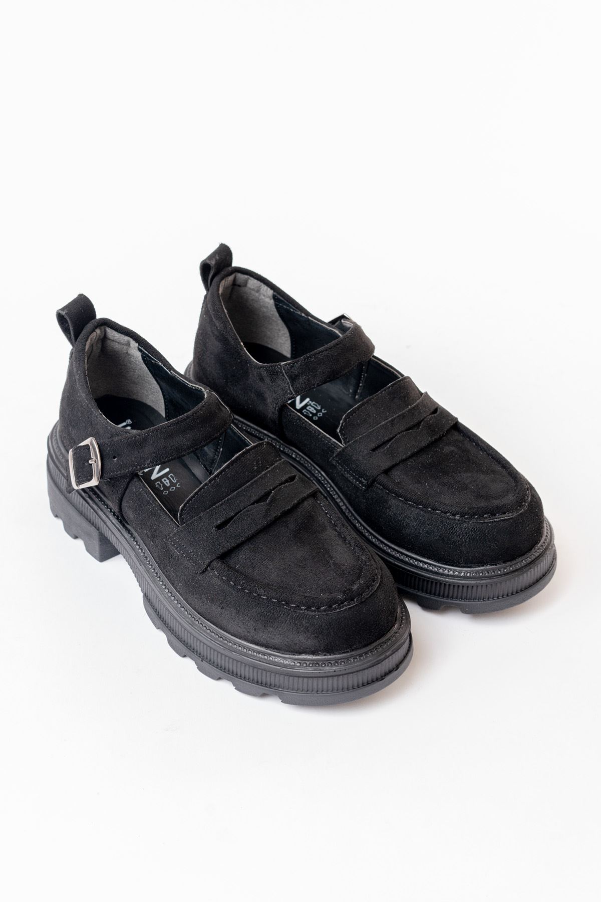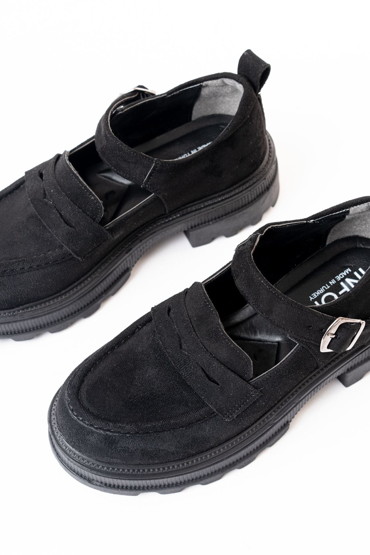 745-771 Siyah Süet Kadın Günlük Yüksek Tabanlı Loafer Ayakkabı