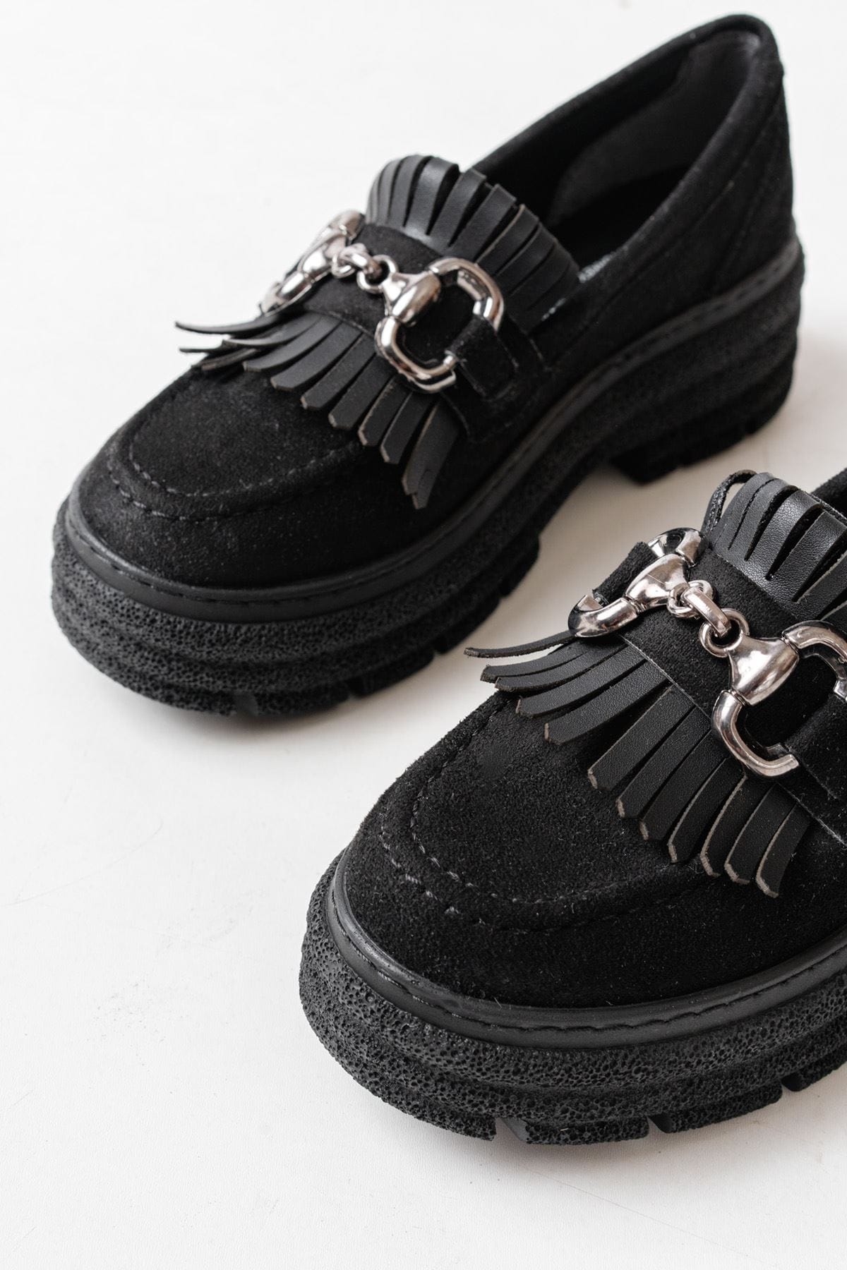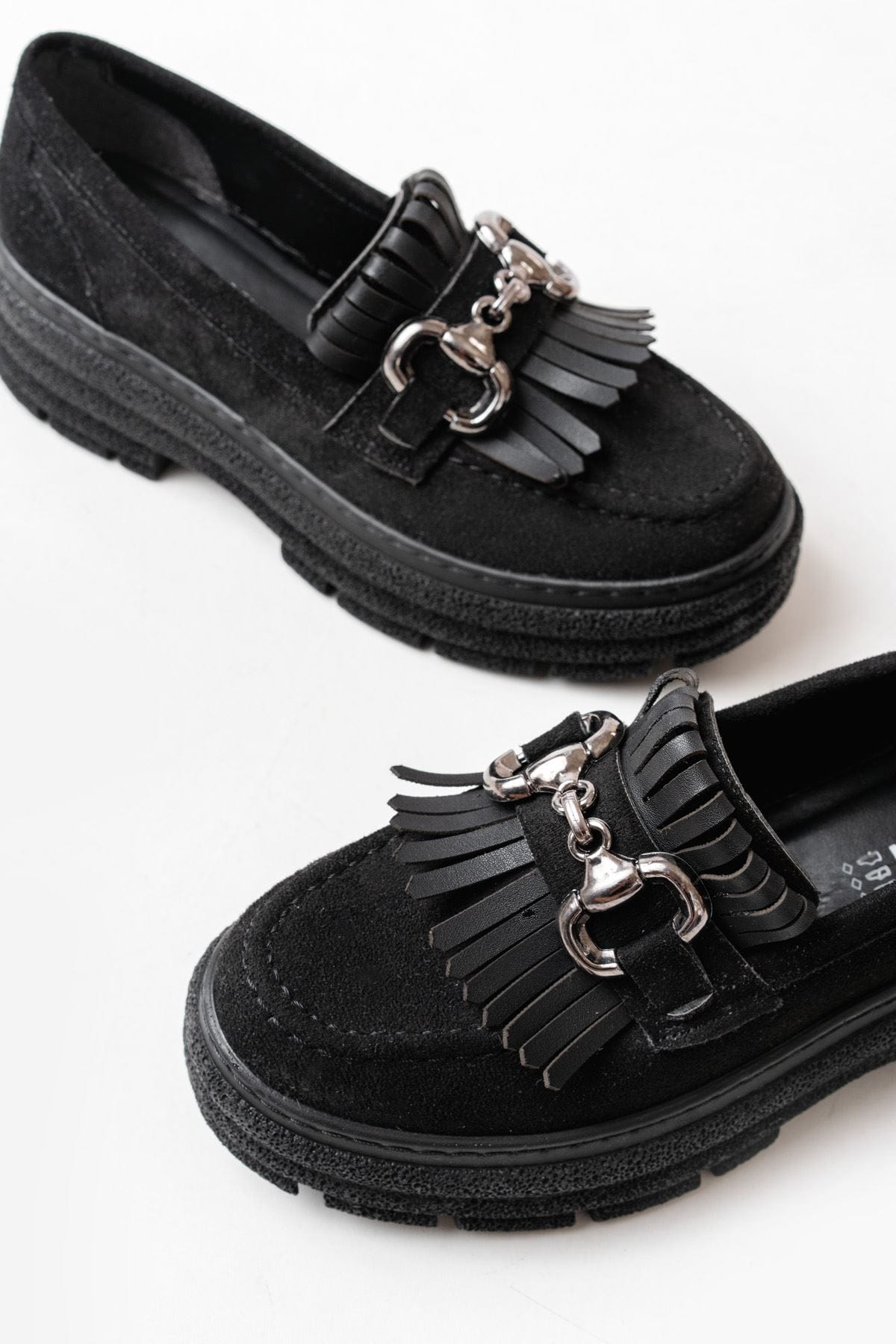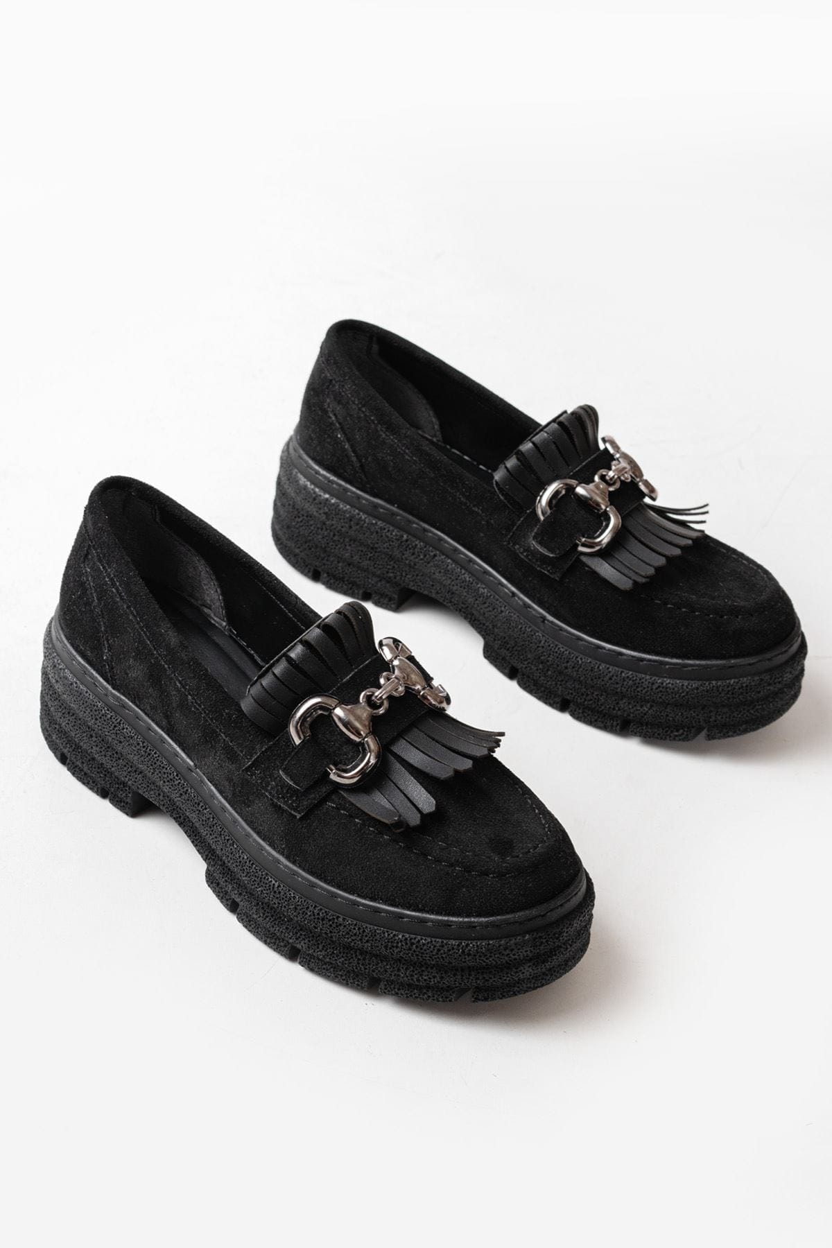 749-750 Siyah Süet Tokalı Günlük Yüksek Tabanlı Loafer Ayakkabı