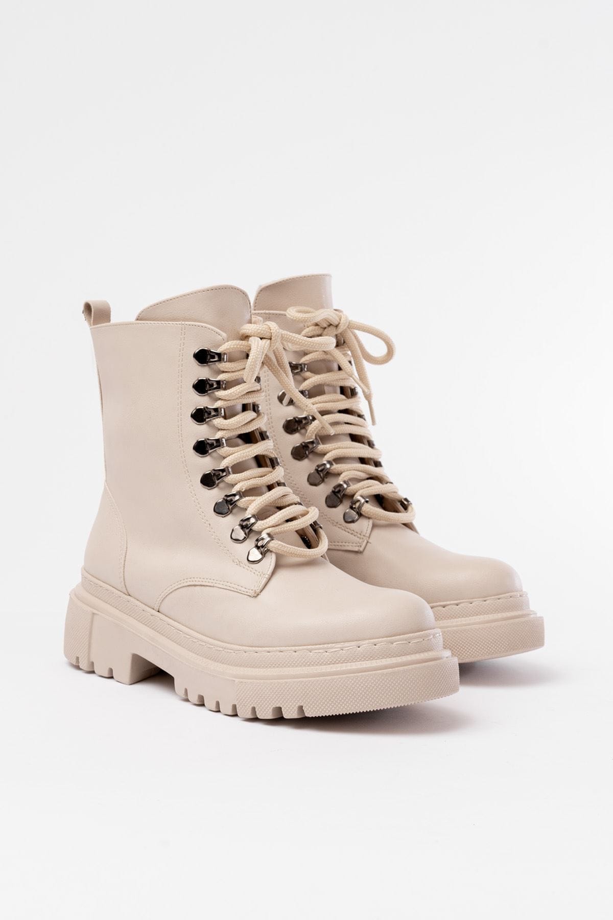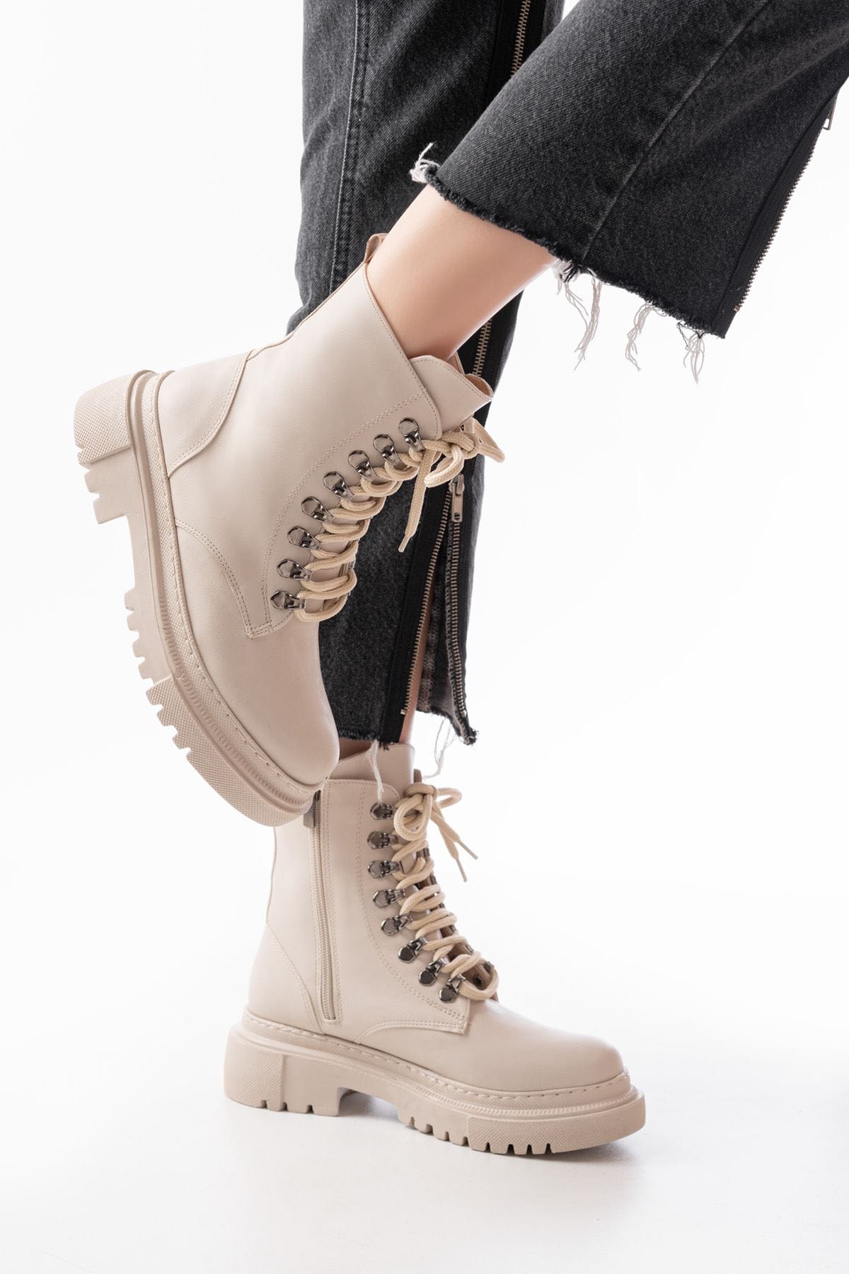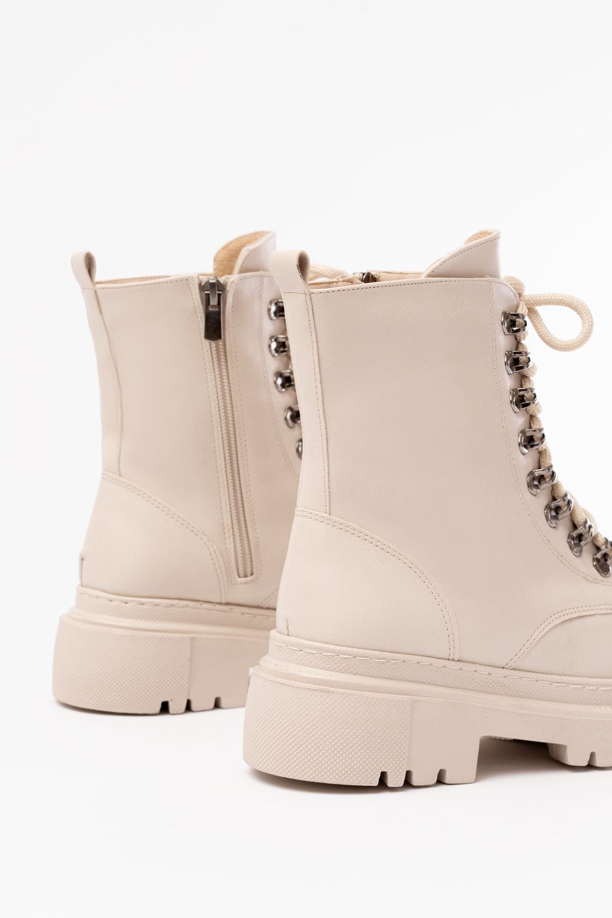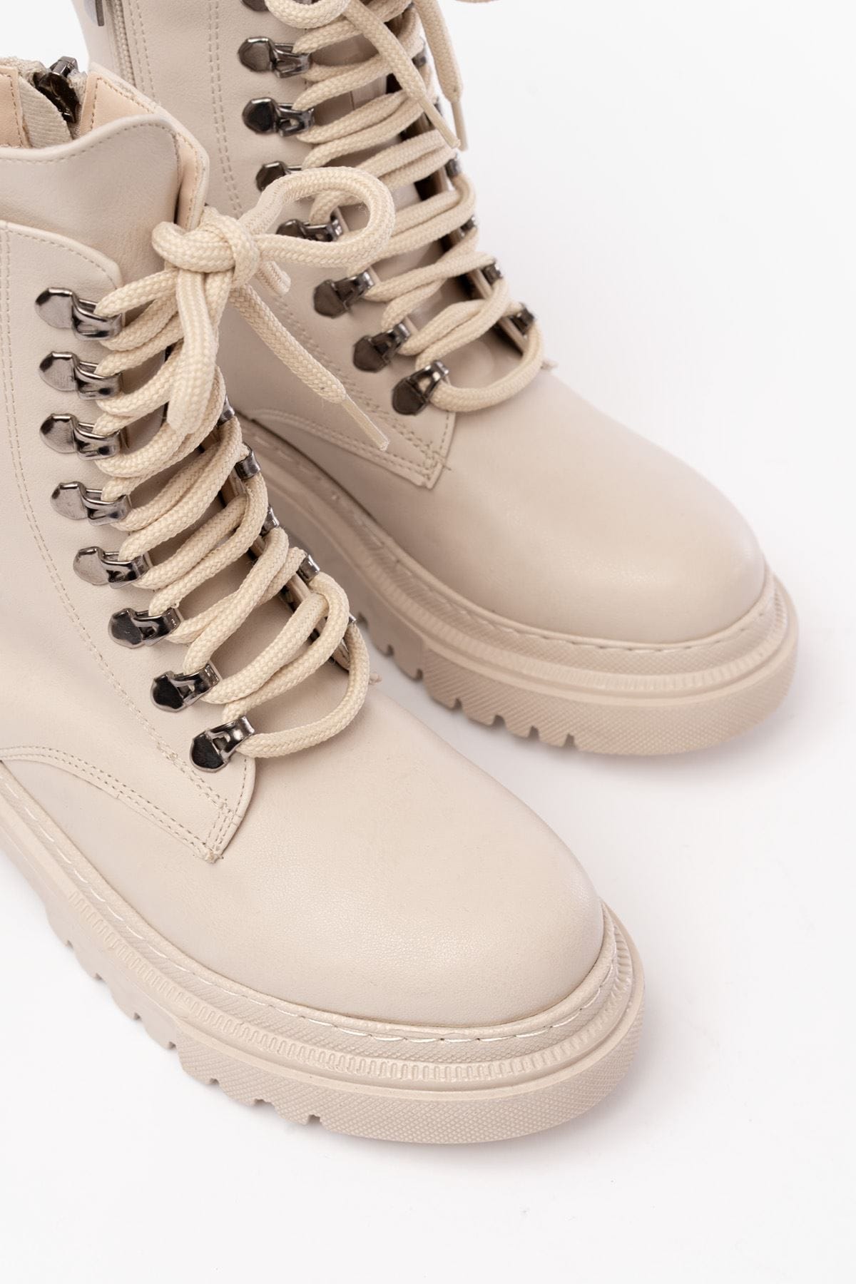 812-2121 Bej Bağcıklı Fermuarlı Günlük Kadın Bot