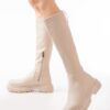812-2291 Bej Fermuarlı Günlük Kadın Çizme