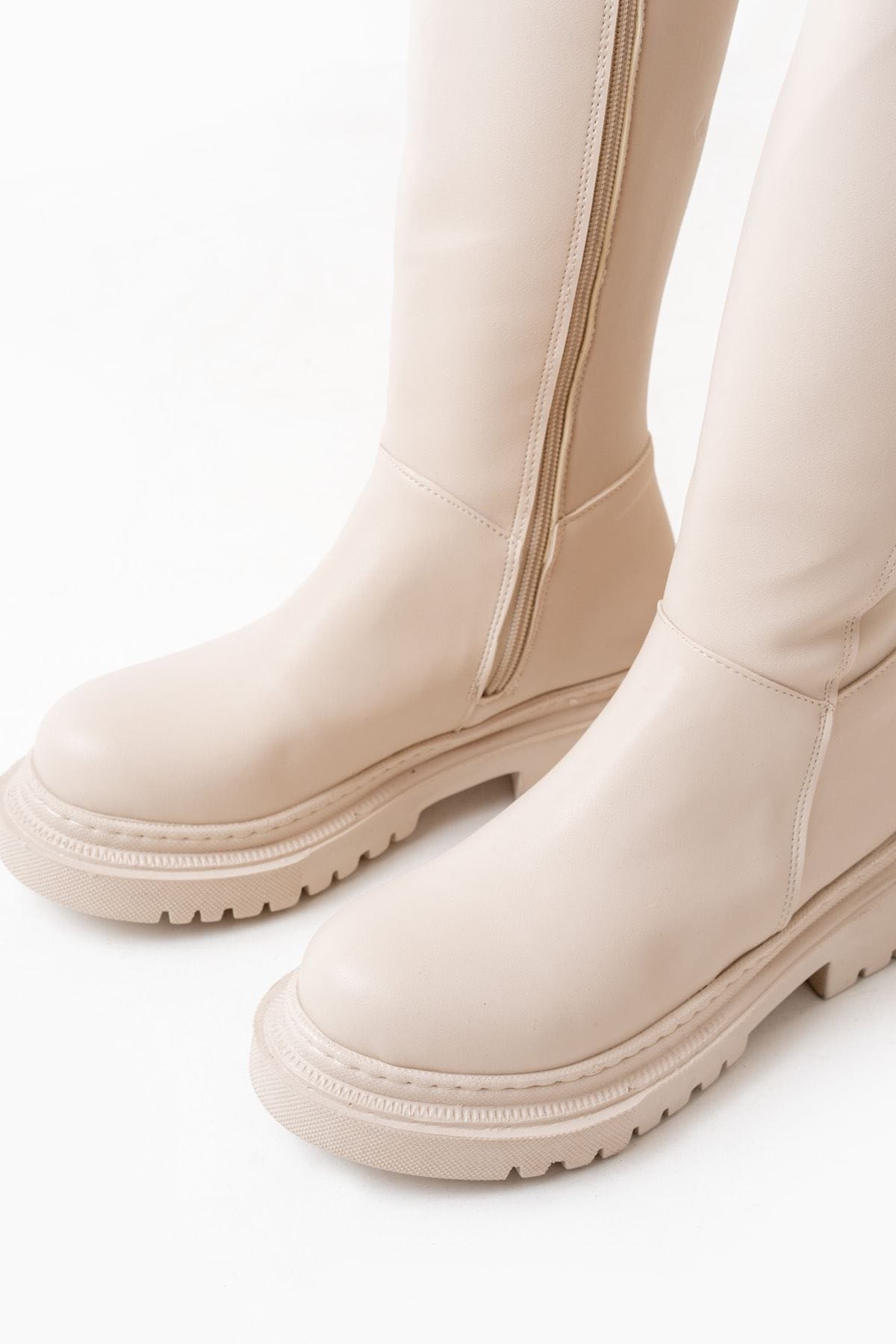 812-305 Bej Arkası Streç Fermuarlı Günlük Kadın Çizme