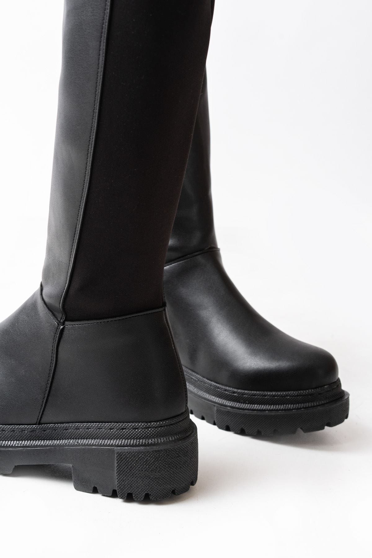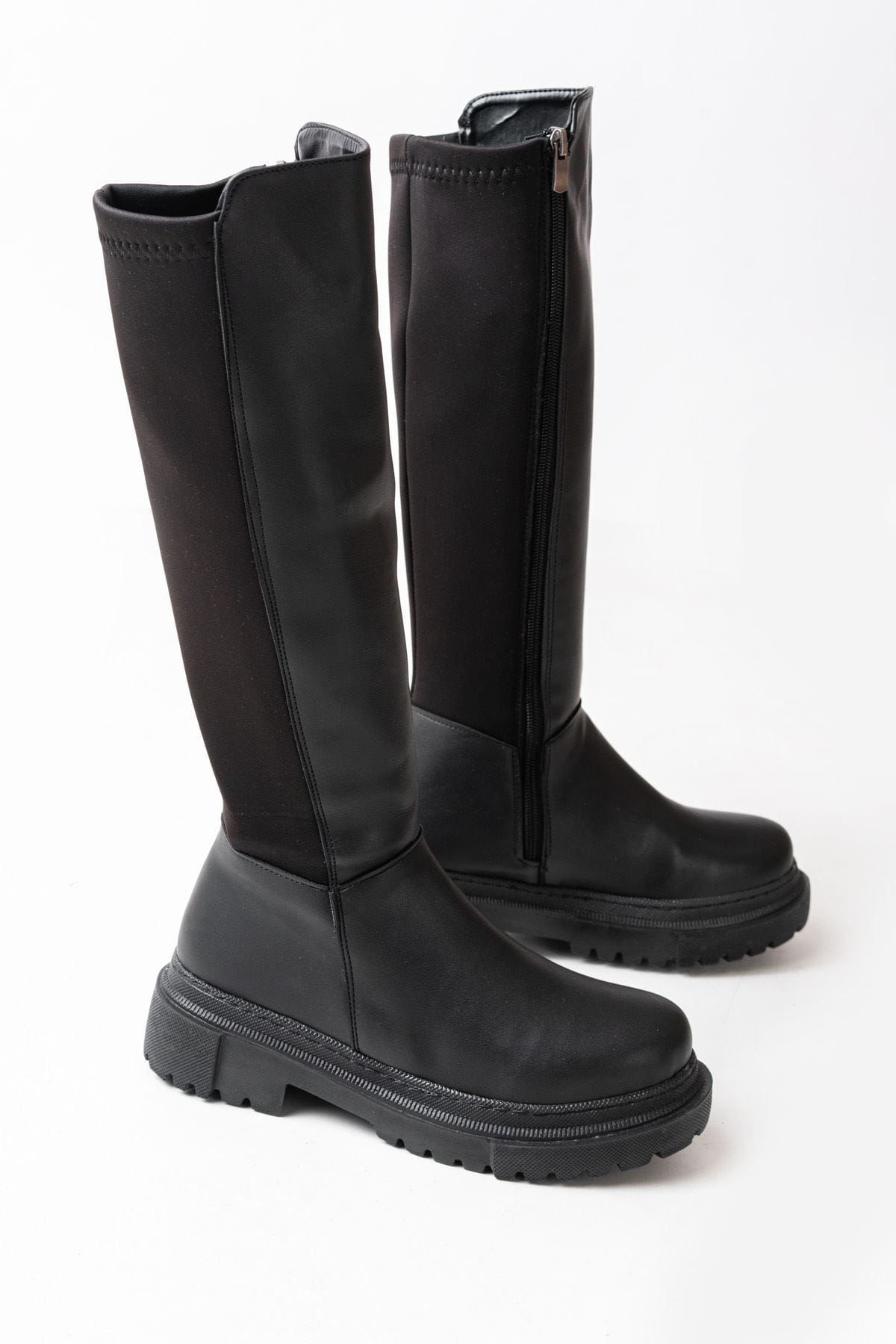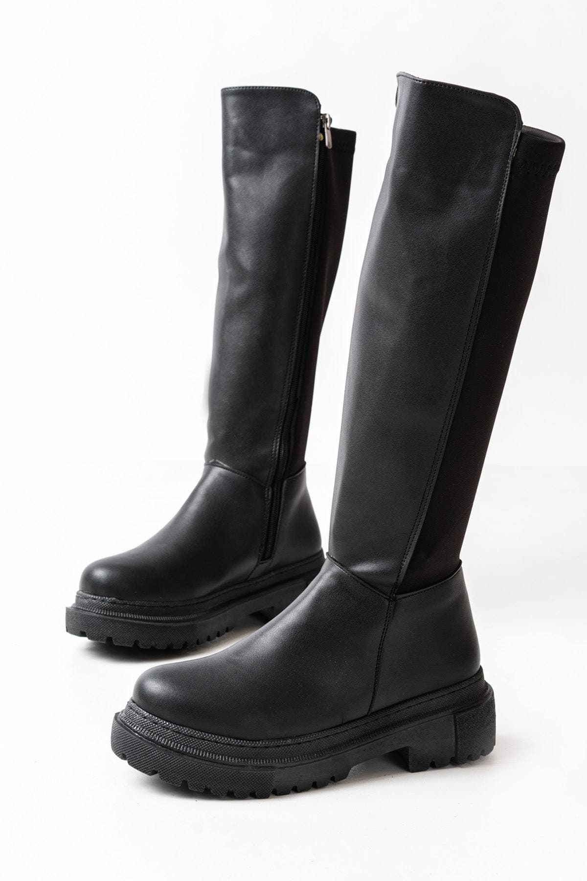 812-305 Siyah Arkası Streç Fermuarlı Günlük Kadın Çizme