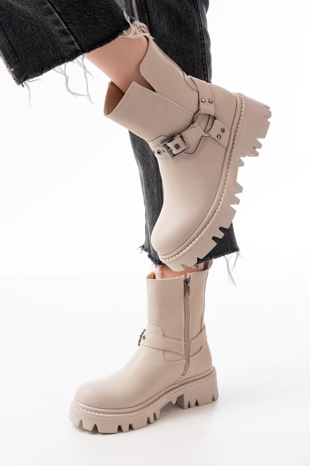 868-2015 Bej Fermuarlı Günlük Kadın Bot