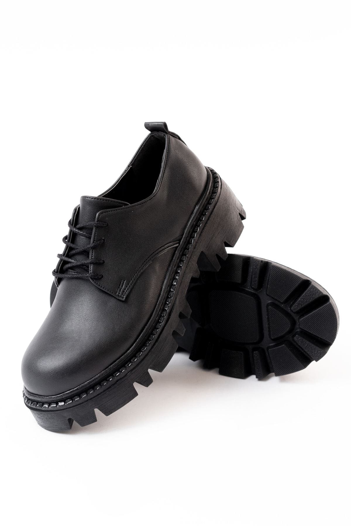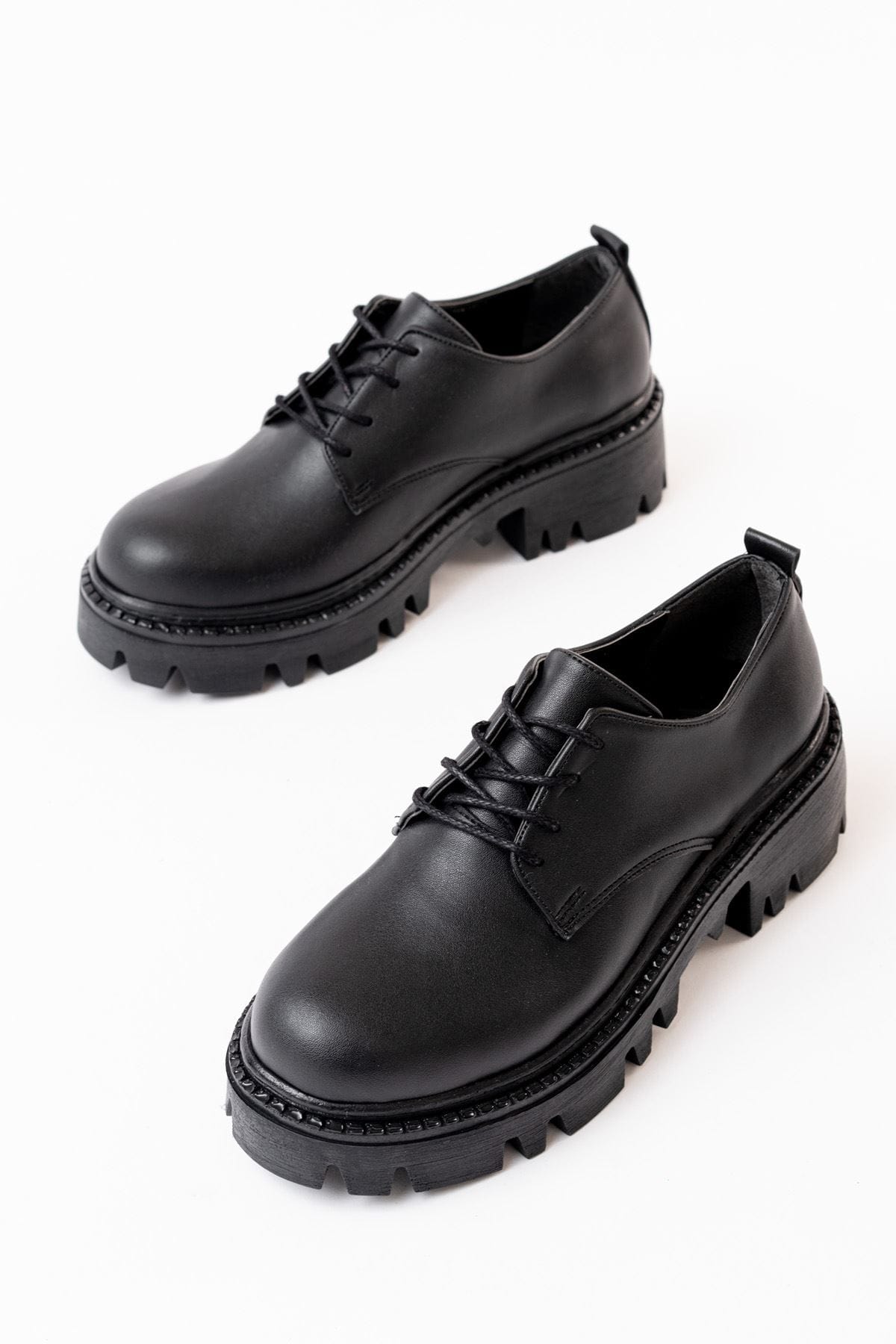 868-754 Siyah Bağcıklı Günlük Yüksek Tabanlı Loafer Ayakkabı