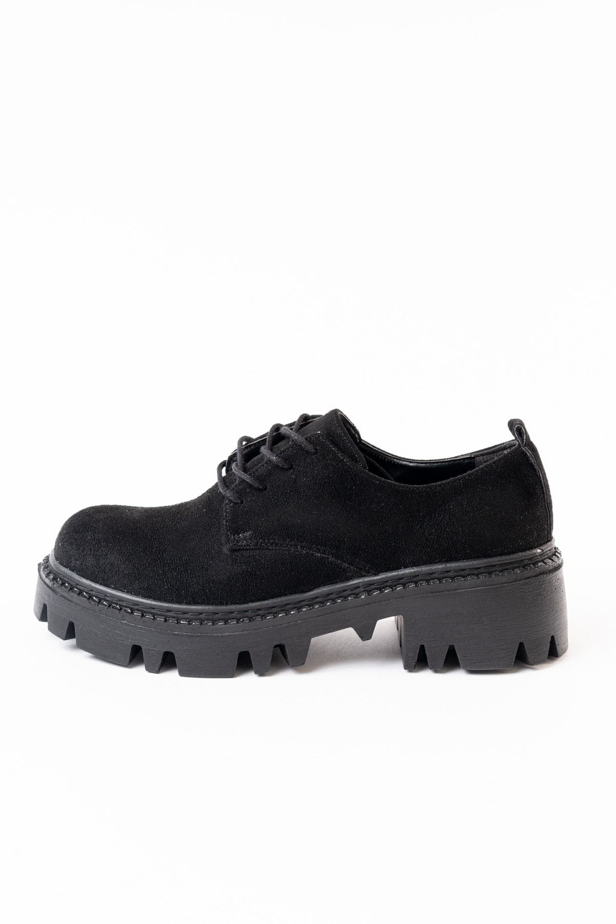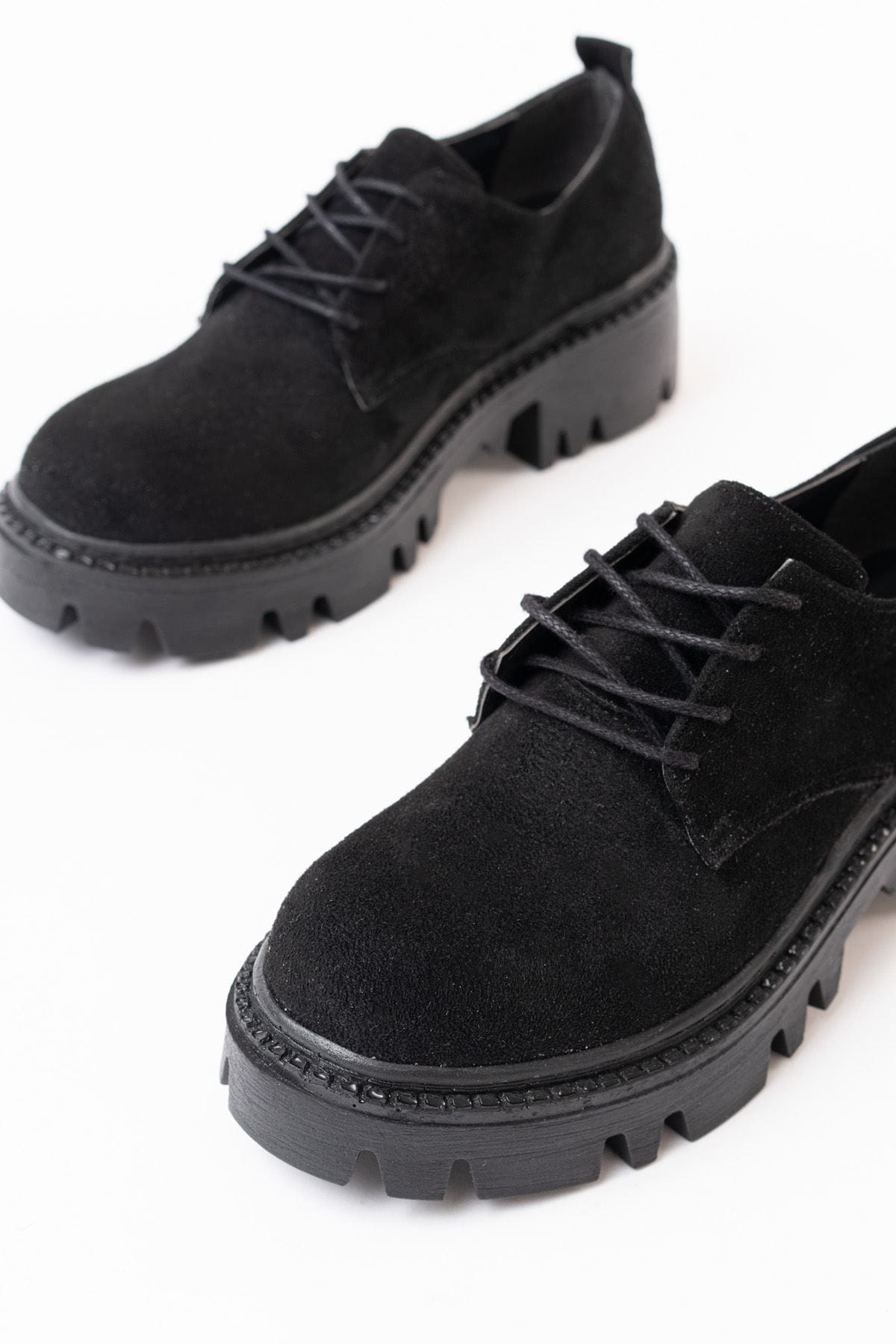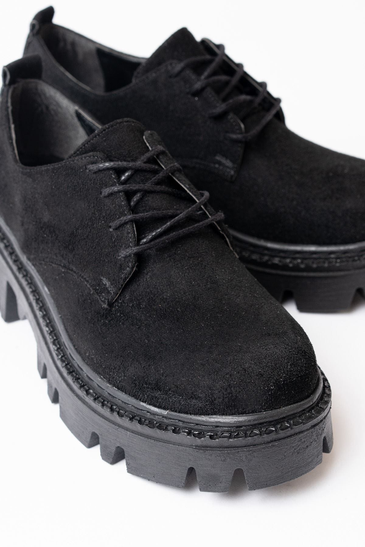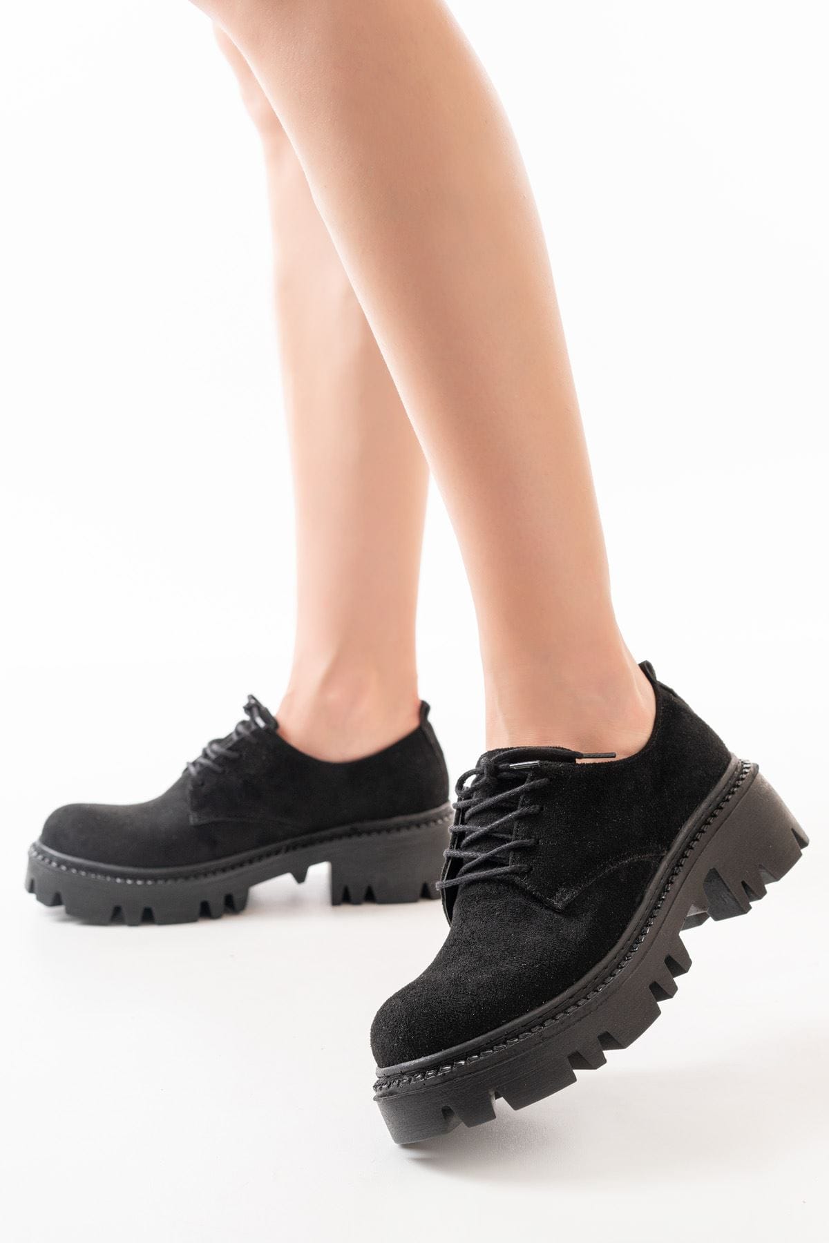 868-754 Siyah Süet Bağcıklı Günlük Yüksek Tabanlı Loafer Ayakkabı