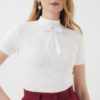 926 Yaka Detaylı Kısa Kol Bluz – Beyaz