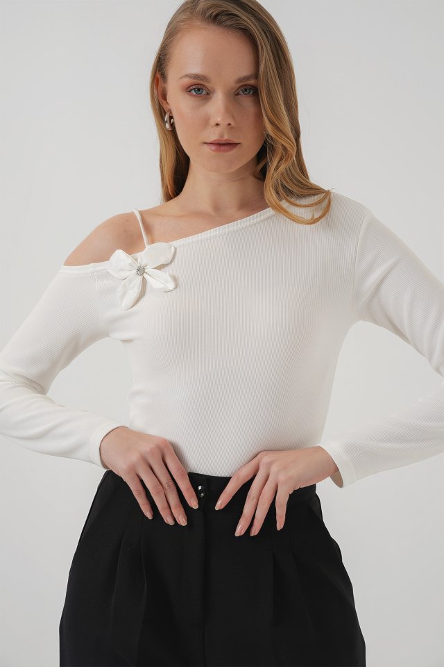 927 Kayık Yaka Uzun Kol Bluz – Beyaz