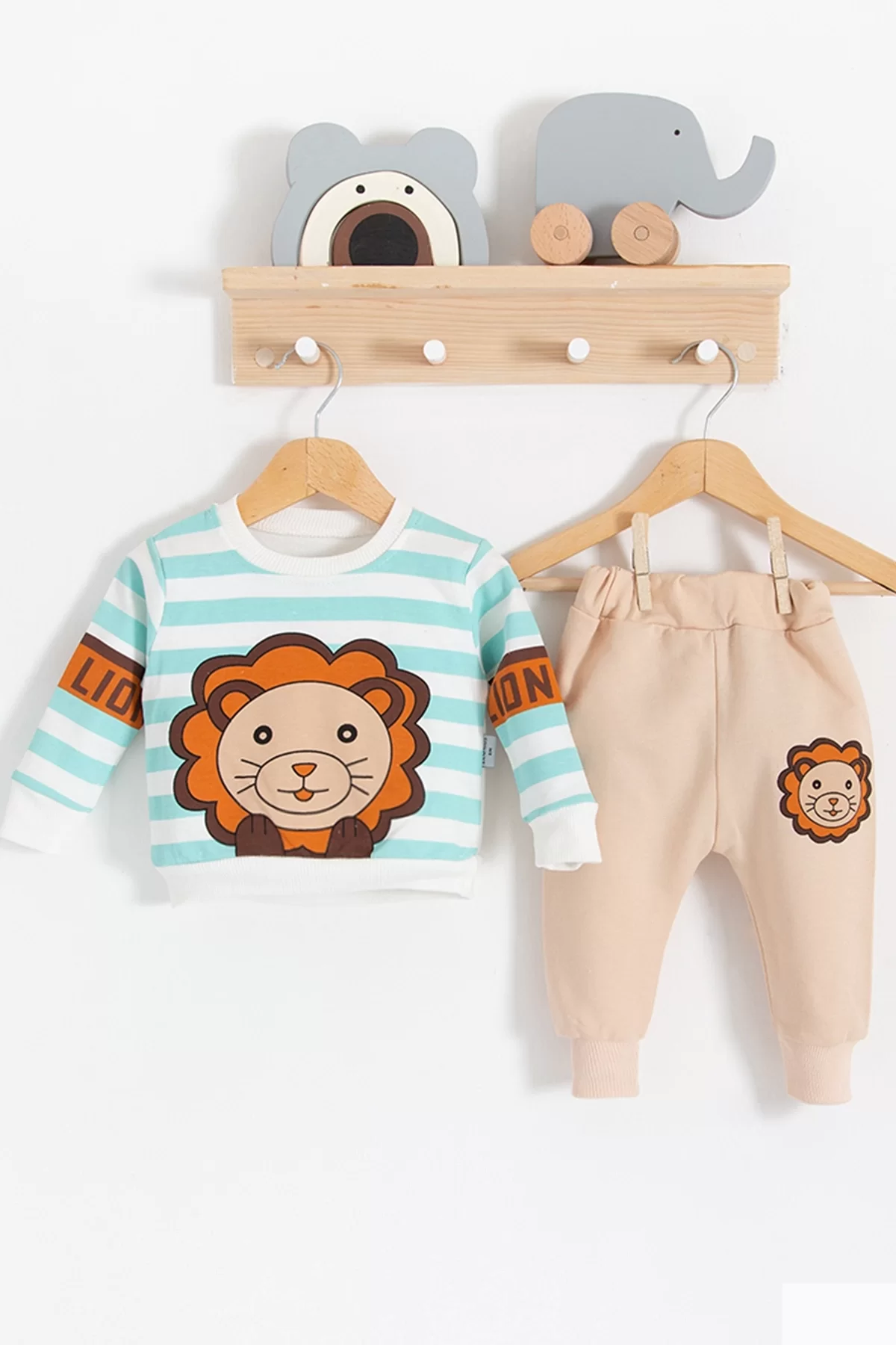 Aslan Desenli 2’li % 100 Pamuk Erkek Bebek Takımı