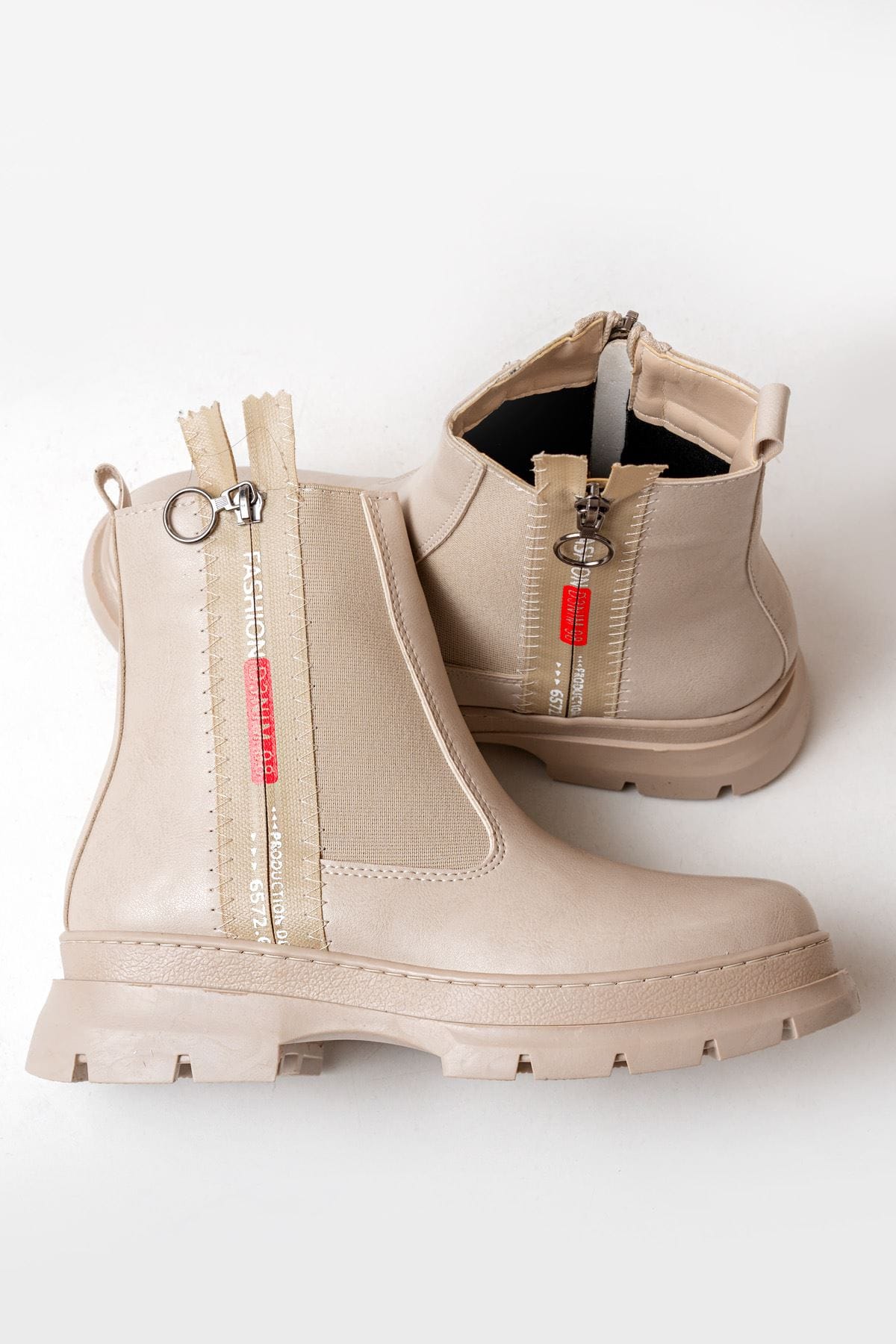 ASM-086 Bej Fashion Aksesuarlı Fermuarlı Günlük Kadın Bot