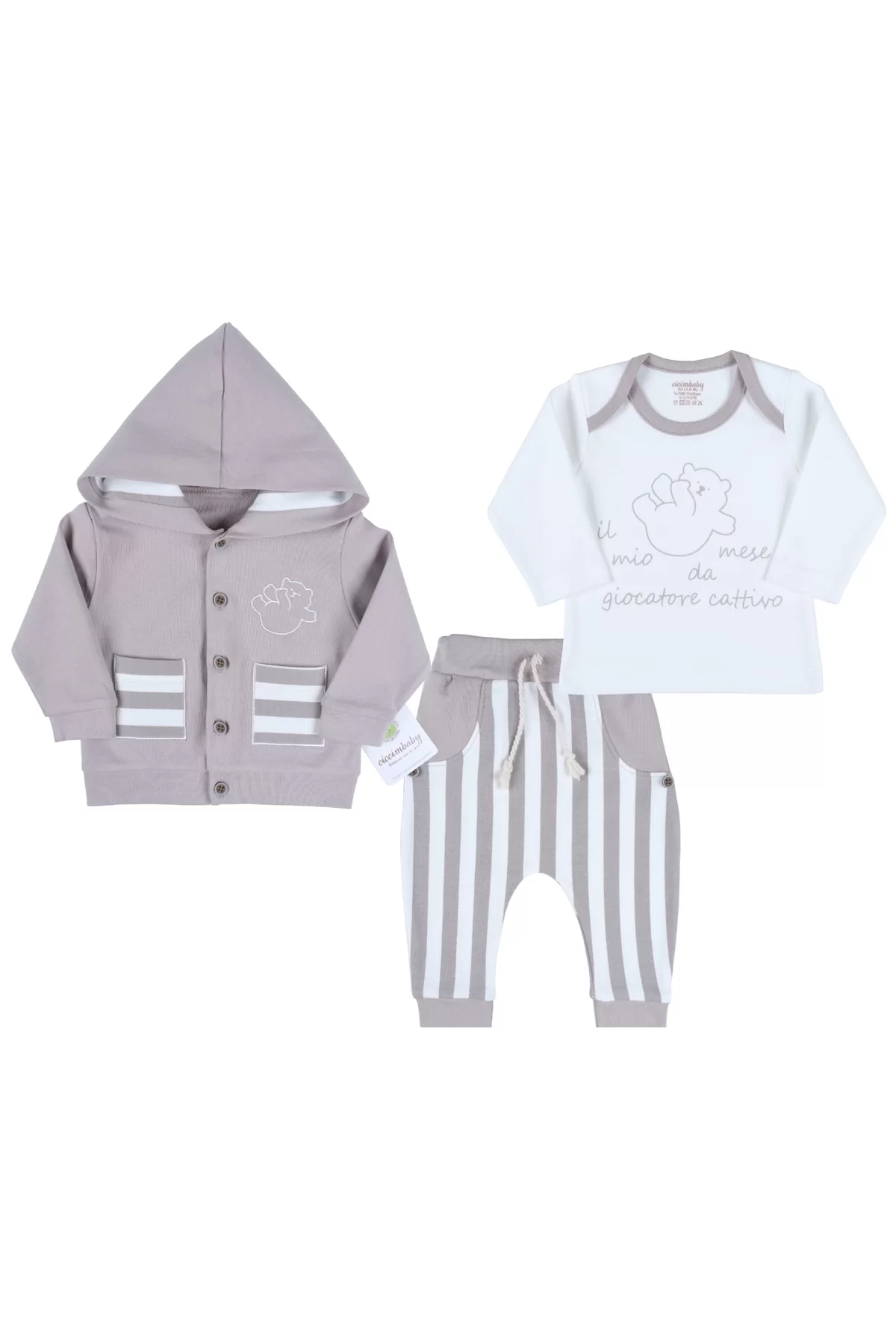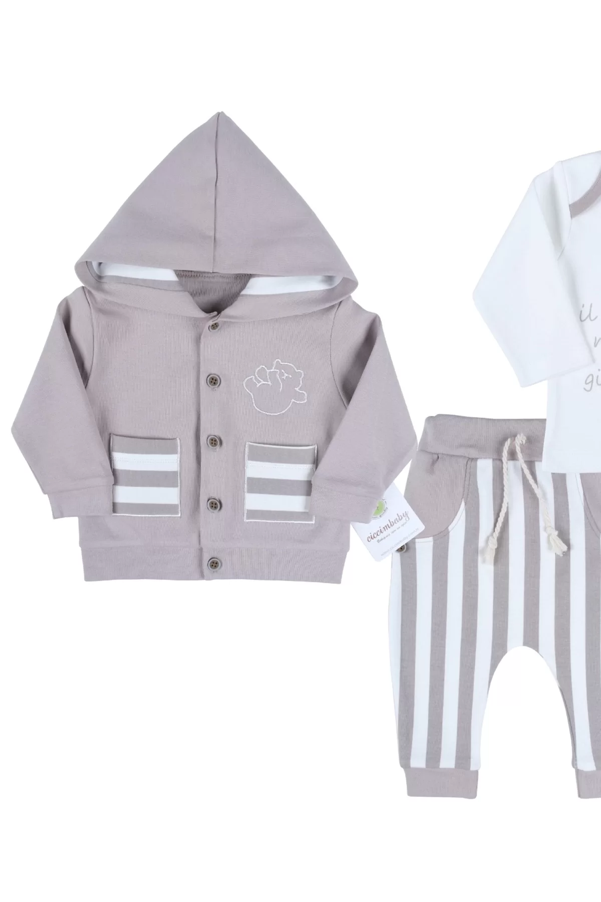 Ayıcık Nakışlı Hırkalı % 100 Pamuk Erkek Bebek Takım