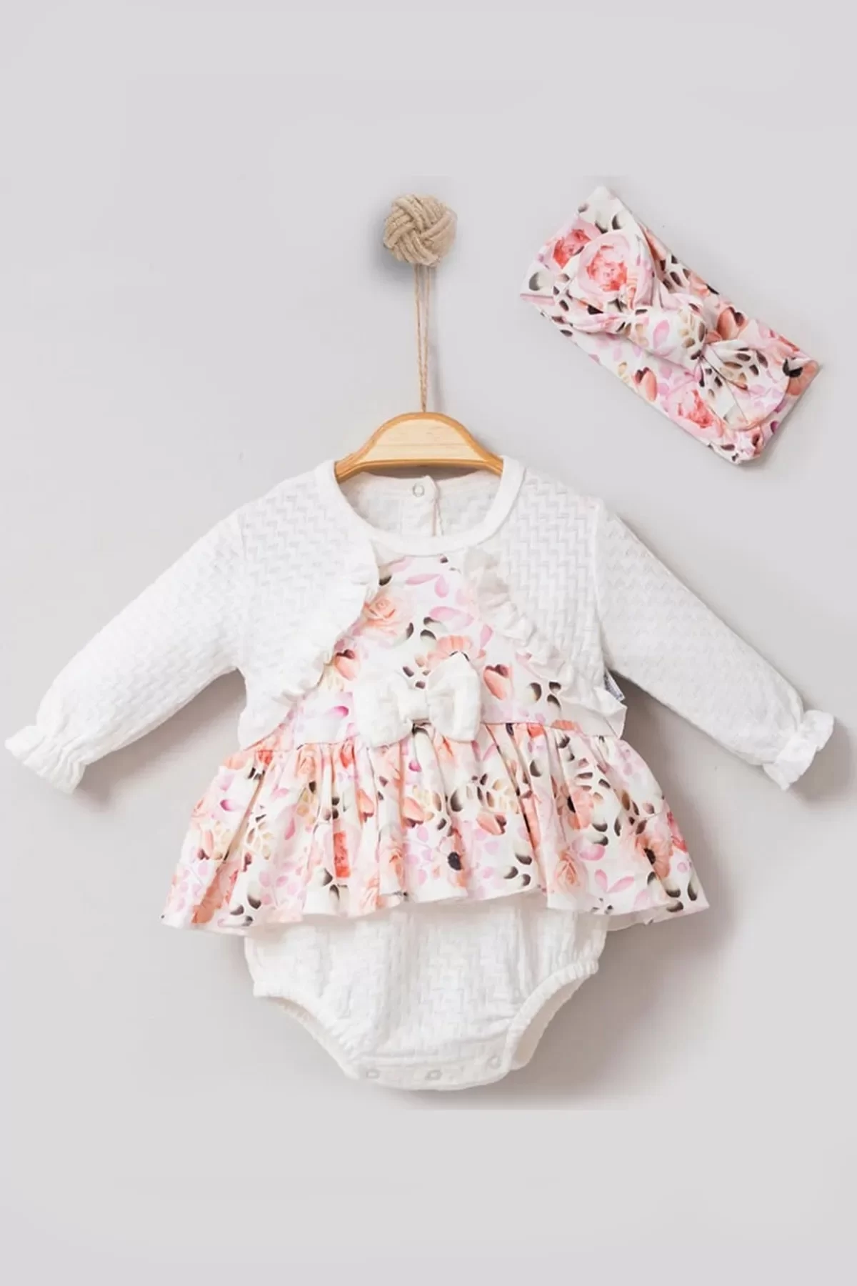 Bahar Çiçekleri Desenli Bandanalı Kız Bebek Romper
