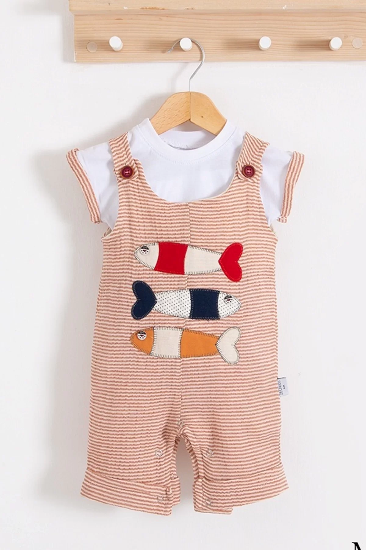 Balık Nakışlı Kısa Kollu Erkek Bebek Tulumu