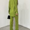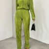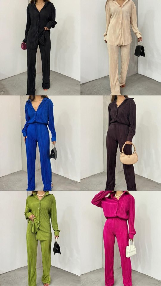 Bayrama Özel Kadın Düşük Omuz Salaş Gömlek Ve Yırtmaç Detay İspanyol Paça Pantolon