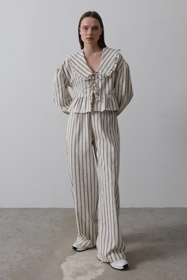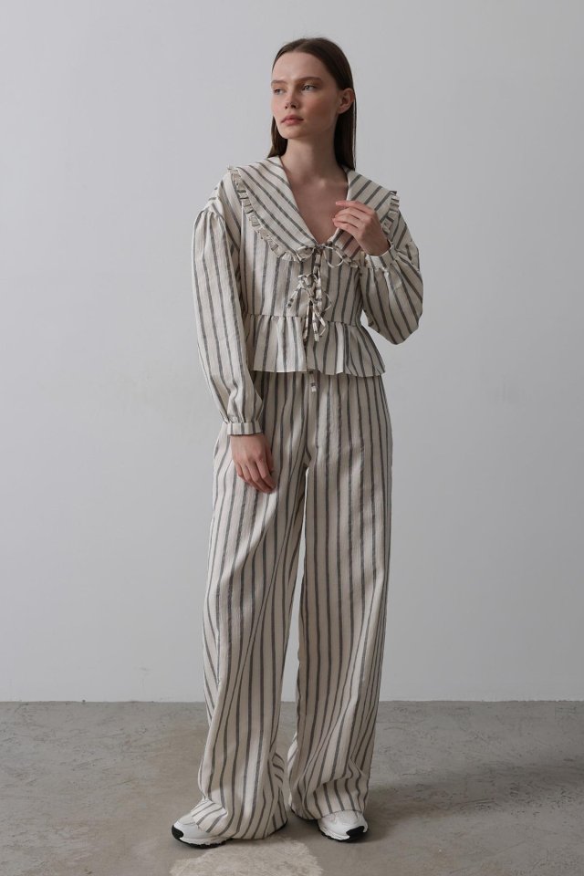 Bebe Yakalı Önü Bağlamalı Takım – Natür