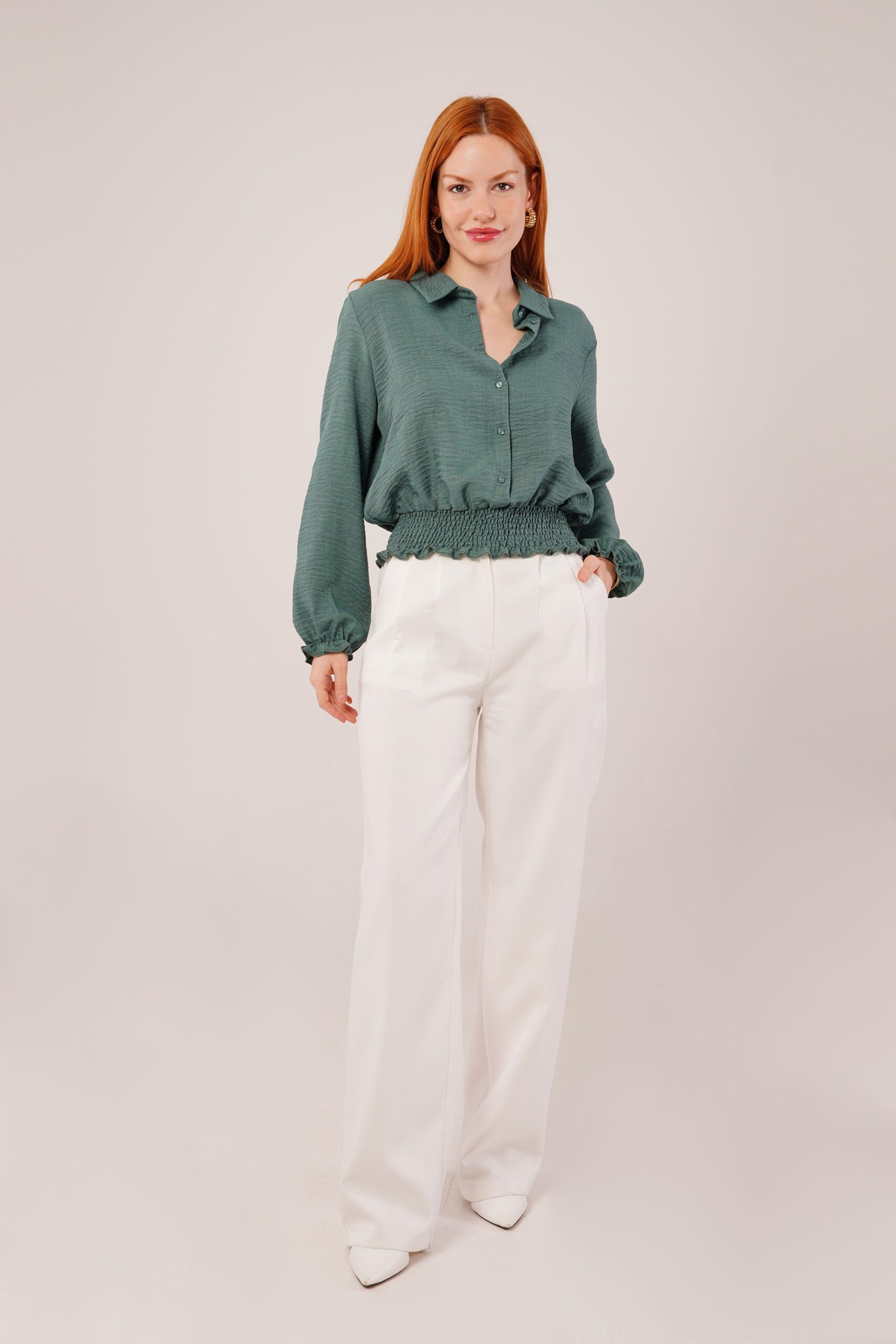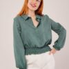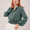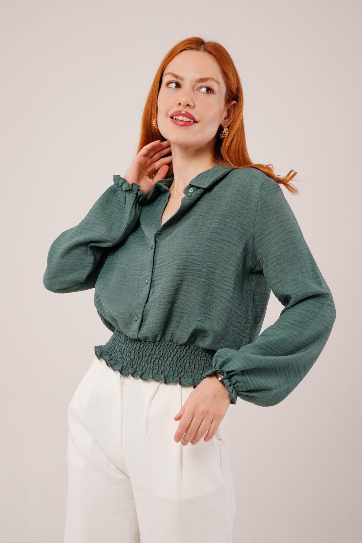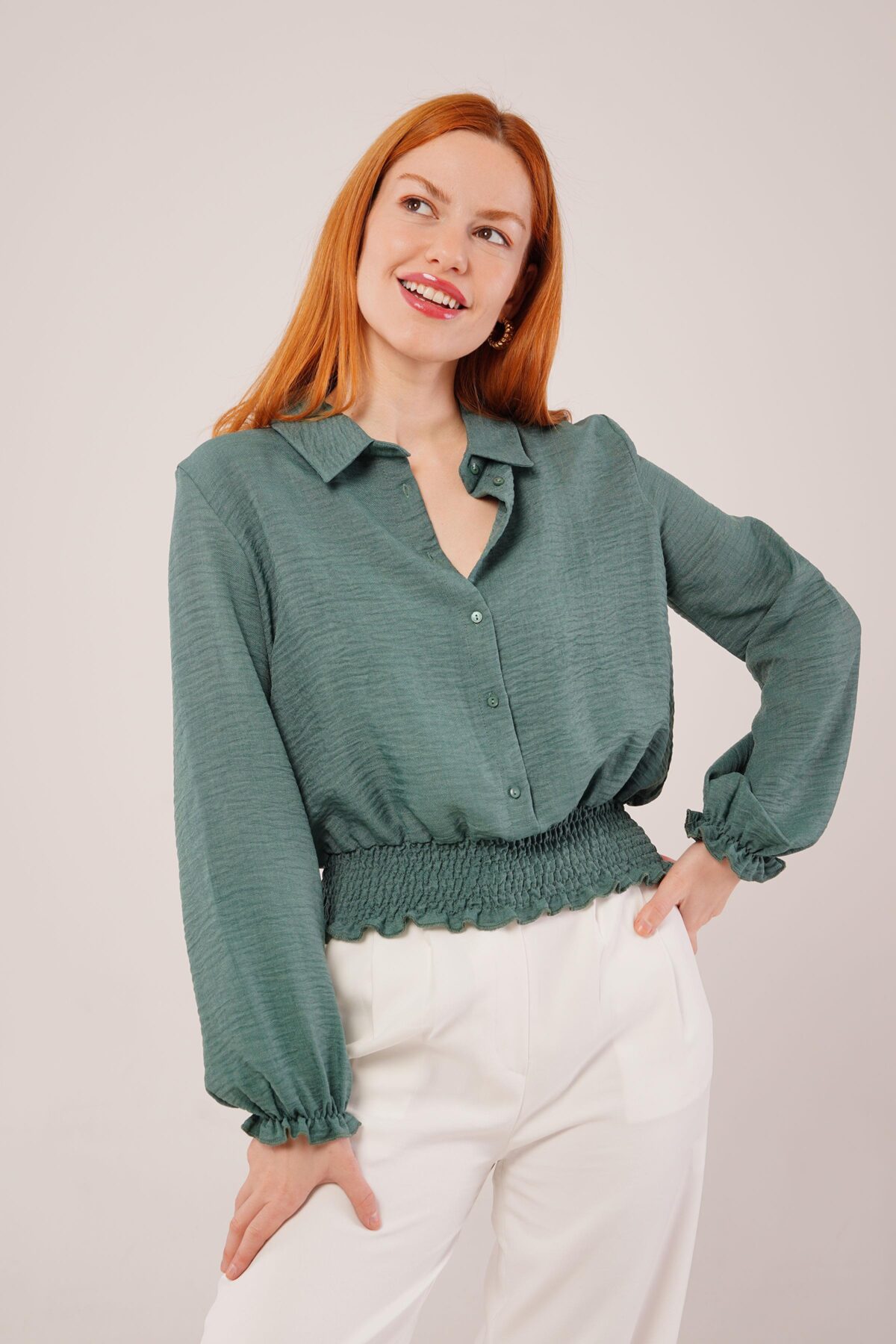 Bel Ve Bilek Lastikli Zümrüt Yeşili Bluz